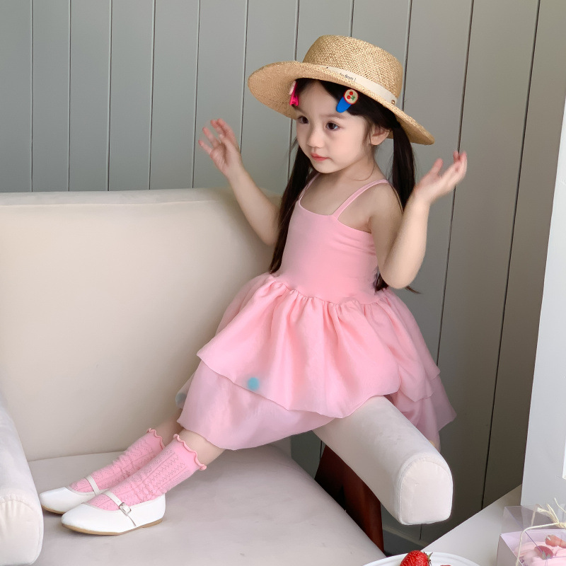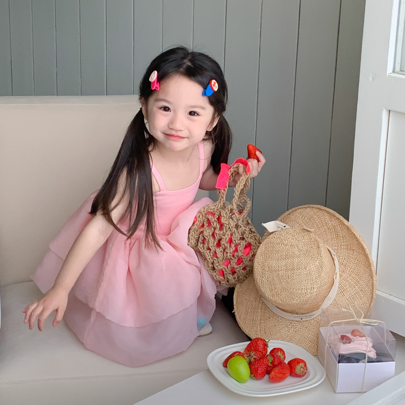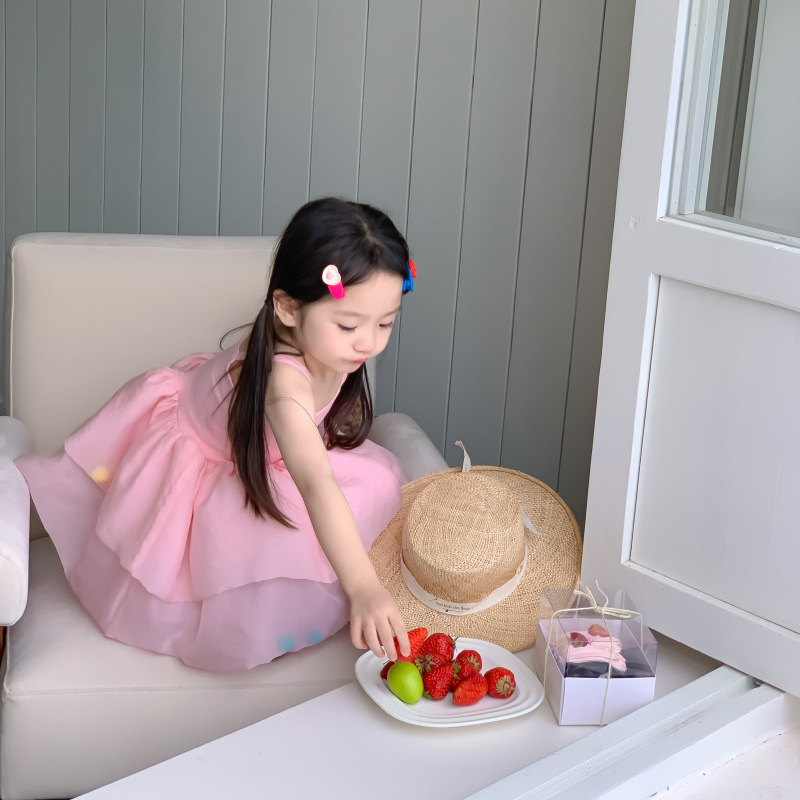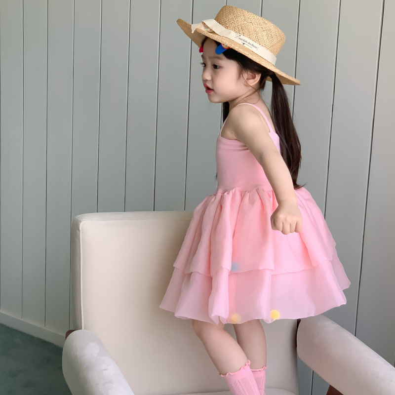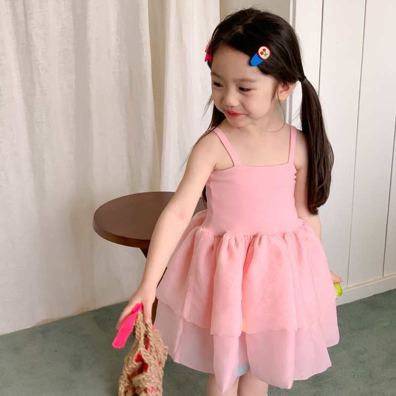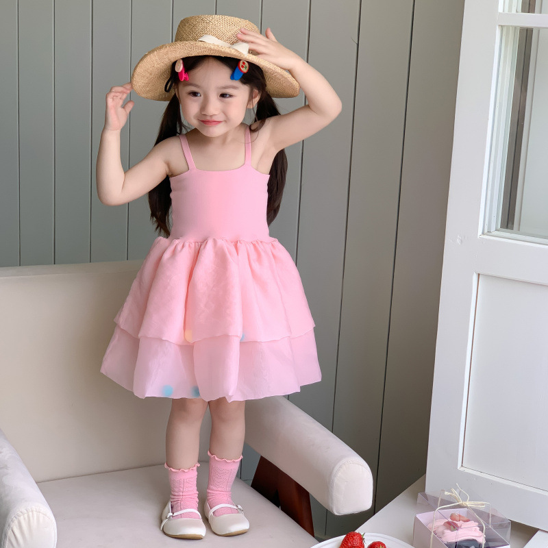 여자 드레스 여름 2024 새로운 한국어 스타일 아동 의류 여자 투투 스커트 아기 여름 드레스 공주 드레스 서스펜더