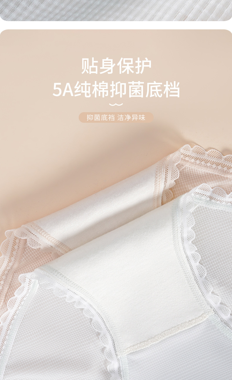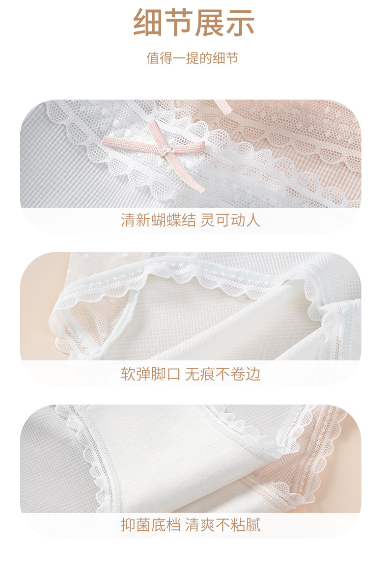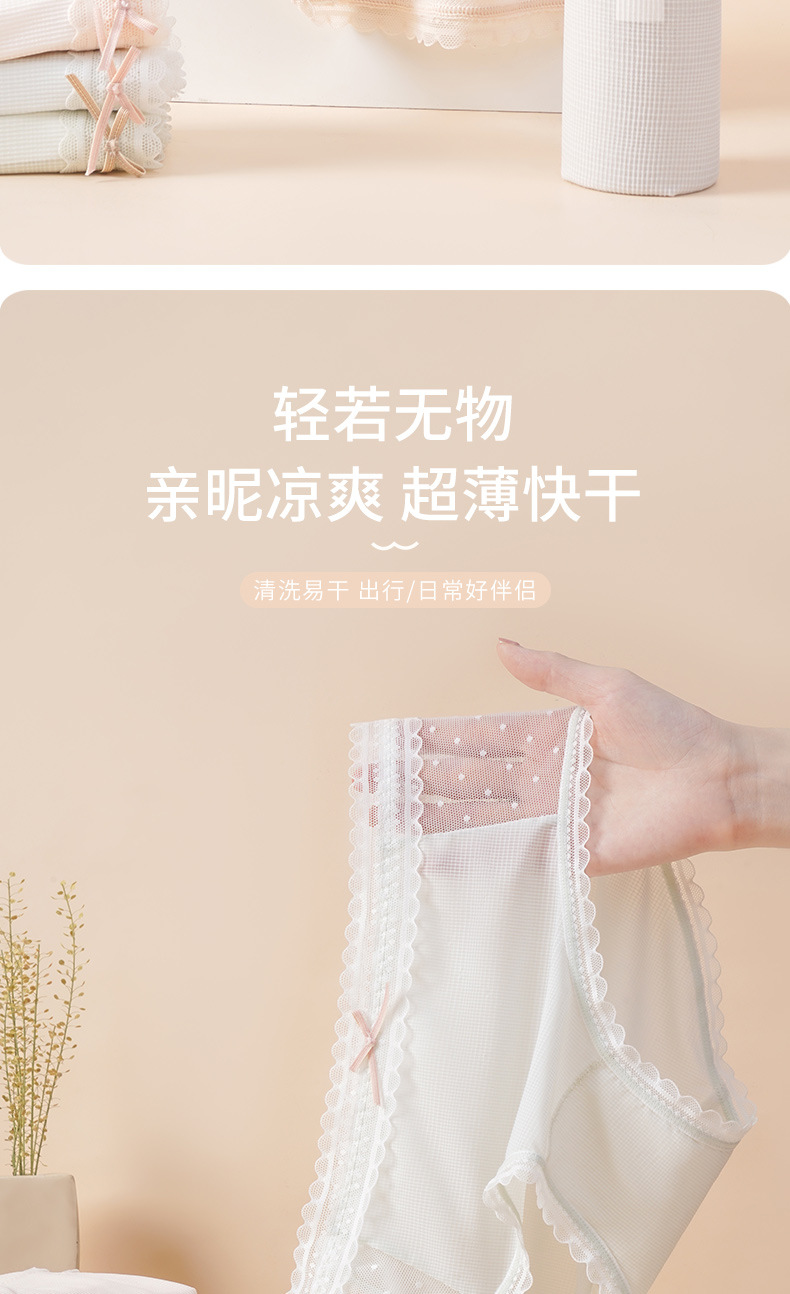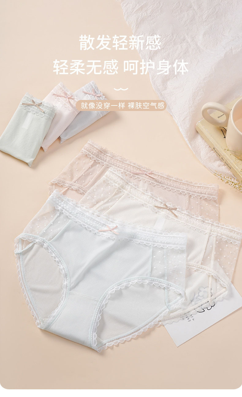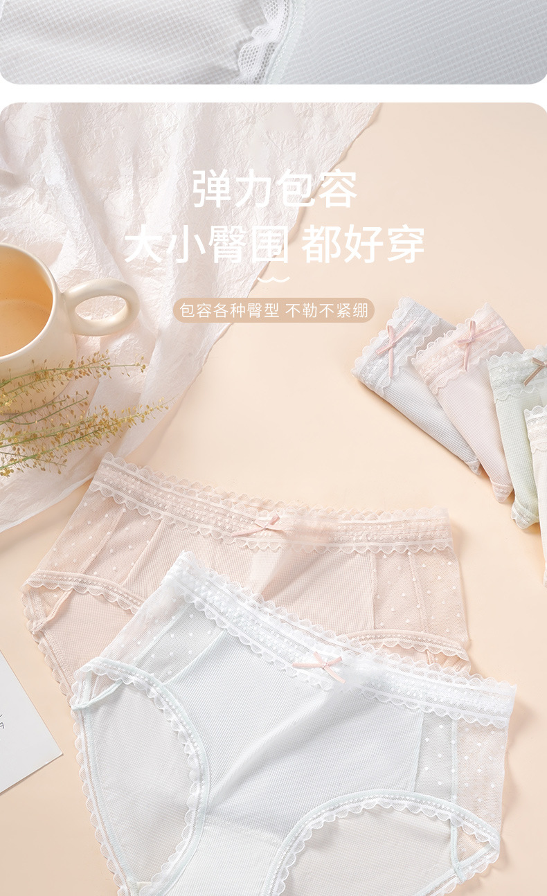 여성용 아이스 실크 속옷 레이스 소녀의 달콤한 순수 통기성 중간 허리 순면 바닥 항균 얇은 브리프 여성용스토어 가기