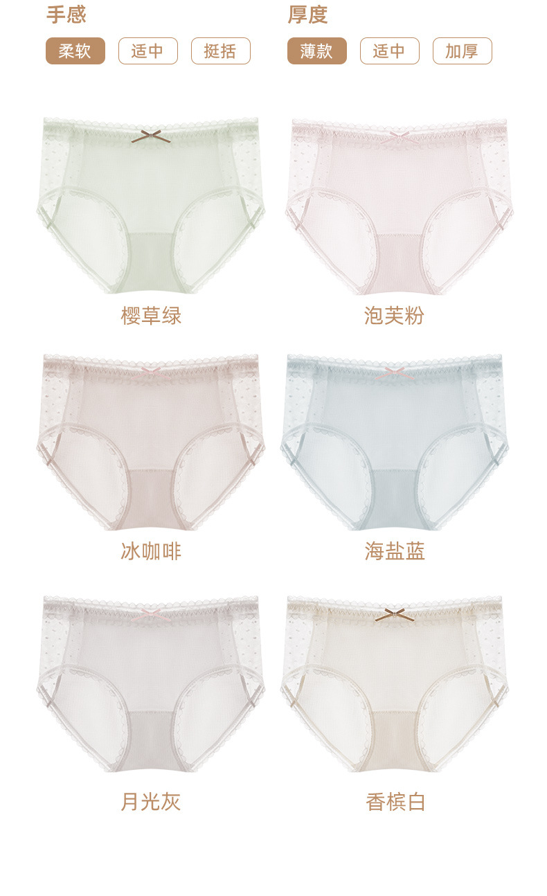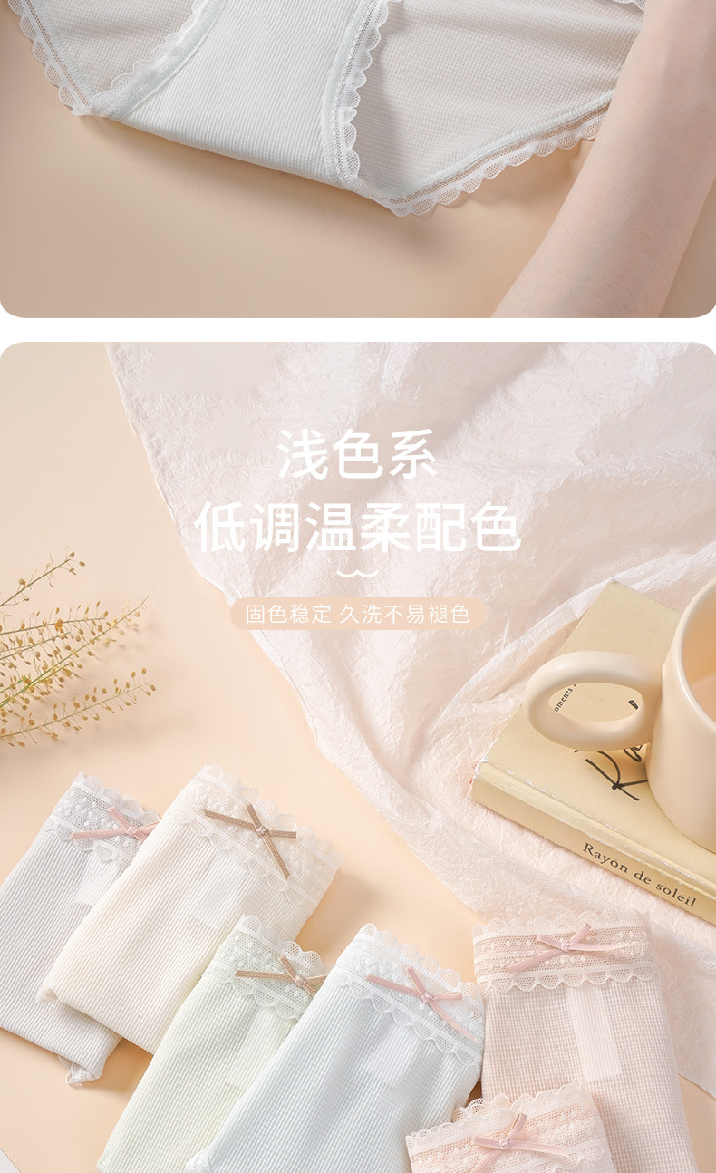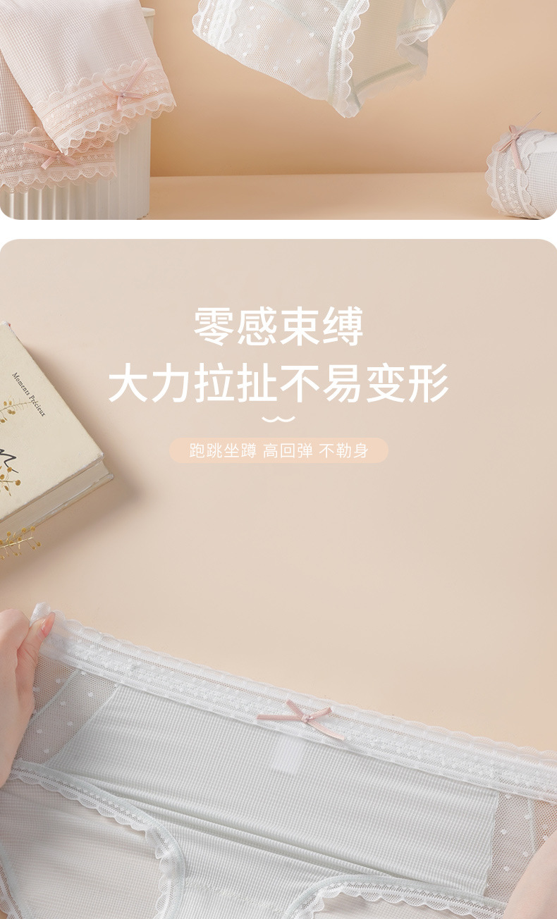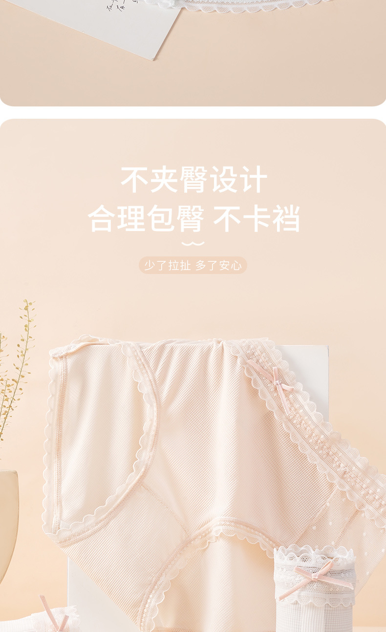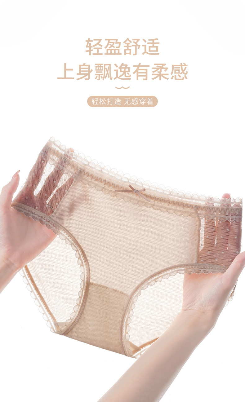 여성용 아이스 실크 속옷 레이스 소녀의 달콤한 순수 통기성 중간 허리 순면 바닥 항균 얇은 브리프 여성용스토어 가기