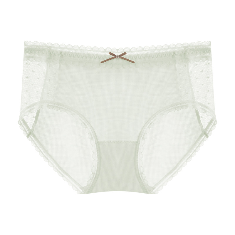 여성용 아이스 실크 속옷 레이스 소녀의 달콤한 순수 통기성 중간 허리 순면 바닥 항균 얇은 브리프 여성용