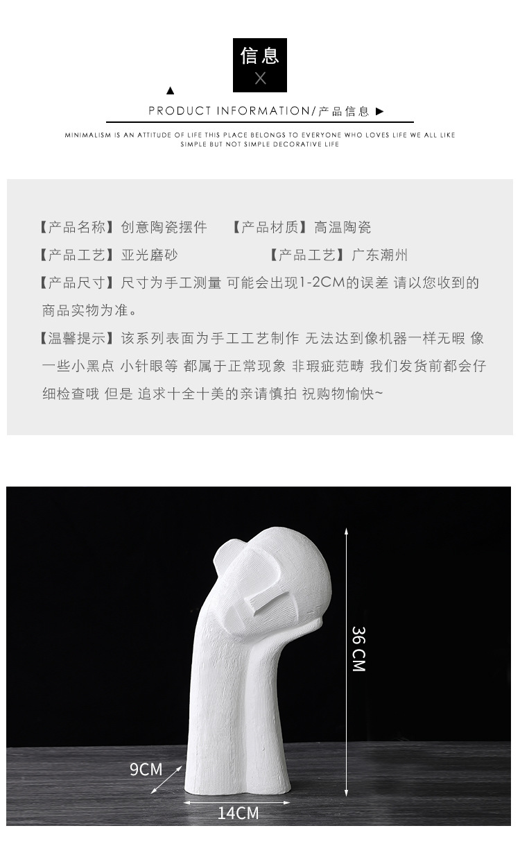 현대적이고 심플한 추상 도자기 장식품, 머리가 기울어진 인물 모형, 모델룸, 판매부, 가정용 모델룸, 탁상 장식품스토어 가기