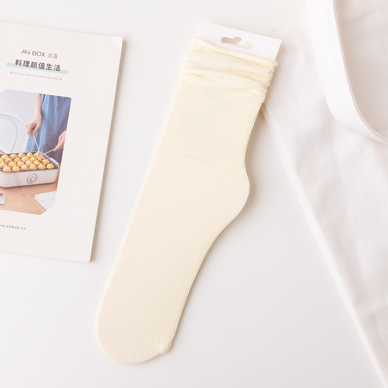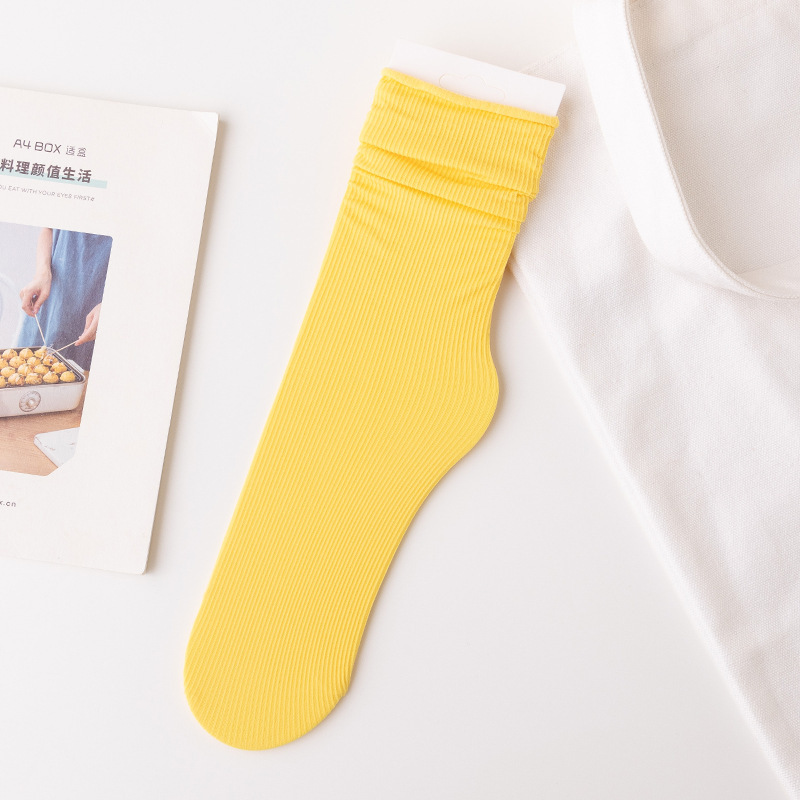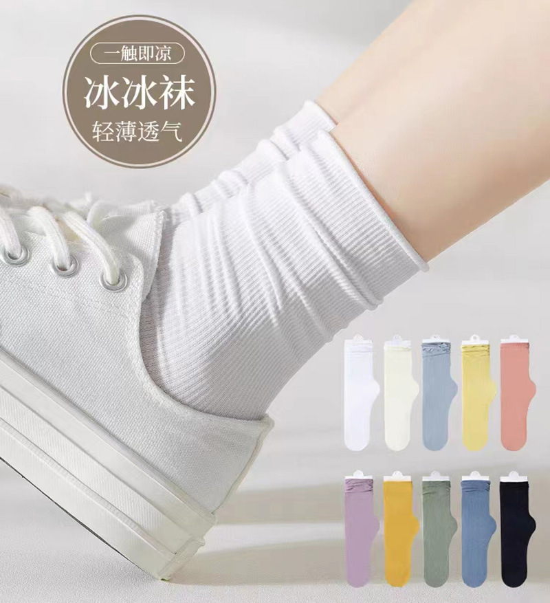 Bingbing 양말 여성 여름 얇은 검은 색 중반 송아지 양말 얼음 실크 흰색 봄과 여름 다목적 캔디 컬러 더미 양말 도매