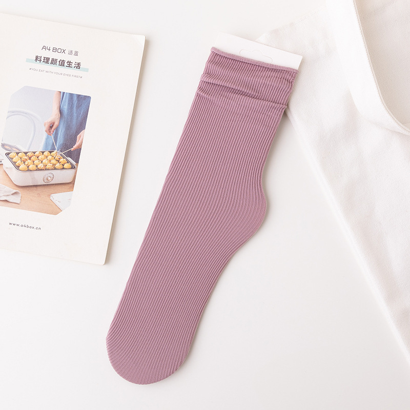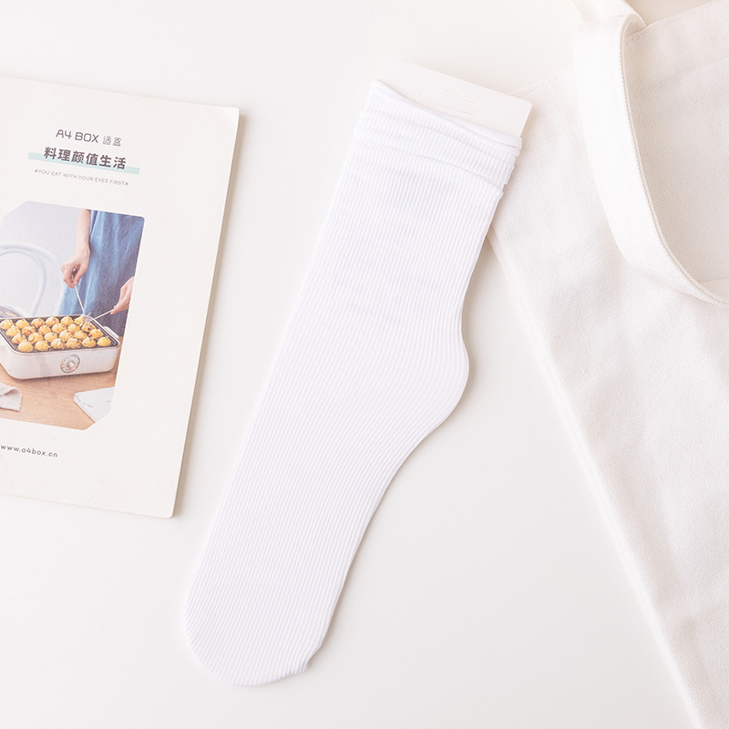 Bingbing 양말 여성 여름 얇은 검은 색 중반 송아지 양말 얼음 실크 흰색 봄과 여름 다목적 캔디 컬러 더미 양말 도매스토어 가기