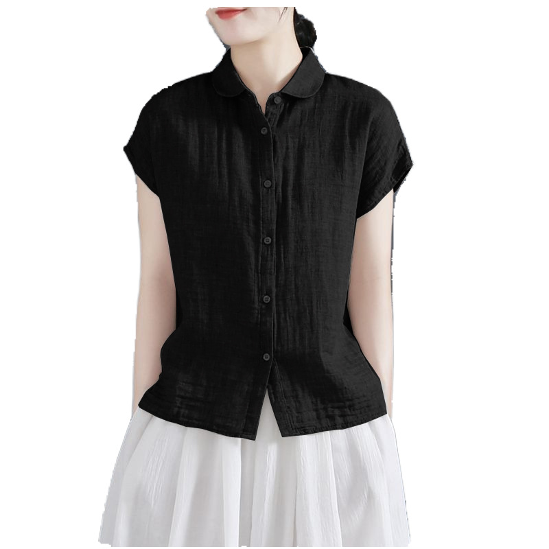 여름 폴로 칼라 디자인 코튼 린넨 반팔 셔츠 여성의 느슨한 작은 플라이 슬리브 코튼 린넨 셔츠 플러스 사이즈 린넨 탑