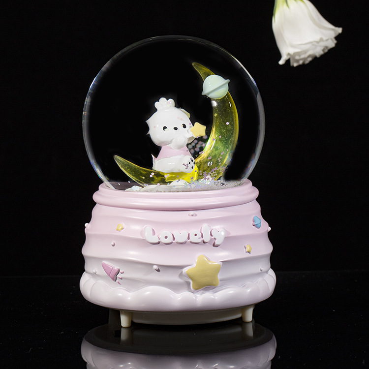 크리 에이 티브 스타 귀여운 만화 크리스탈 볼 어린이 뮤직 박스 생일 선물 홈 거실 장식 수지 장식품