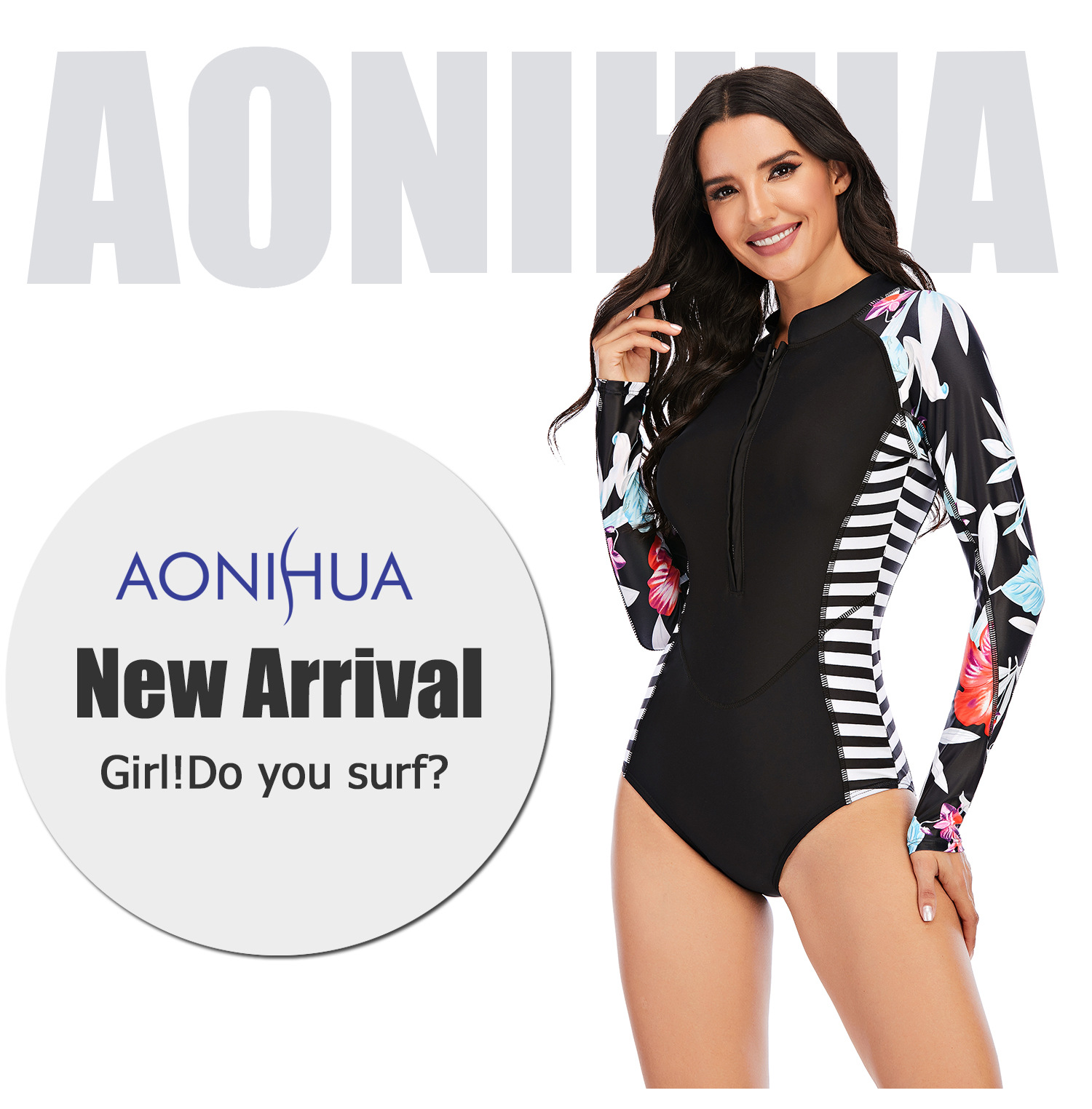 유럽과 미국 대외 무역 원피스 긴팔 서핑 슈트 자외선 차단제 여성용 수영복 온천 다이빙 세트 섹시 수영복 오니 플라워 5529스토어 가기