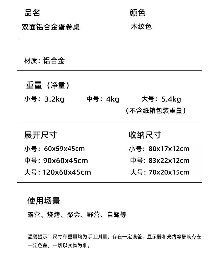 • 120cm 양면 알루미늄 합금 계란말이 테이블 “보관 봉투 보내기]