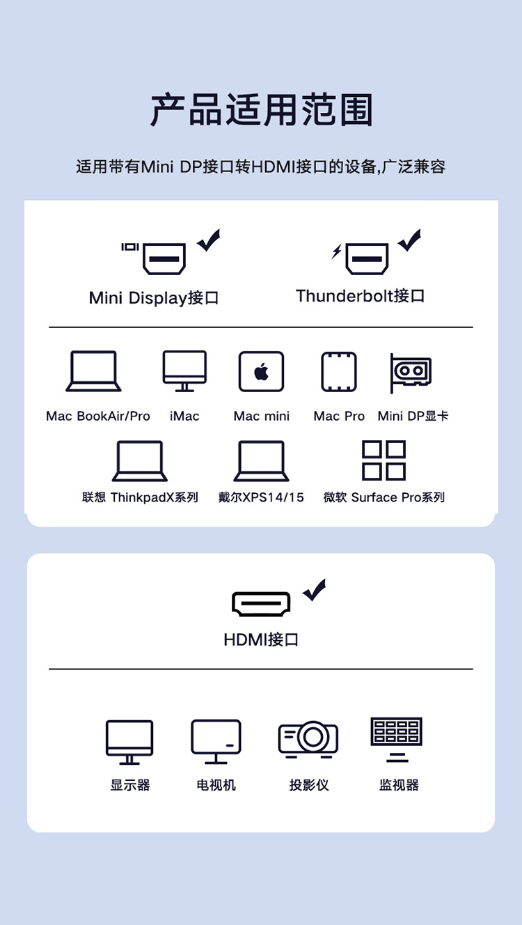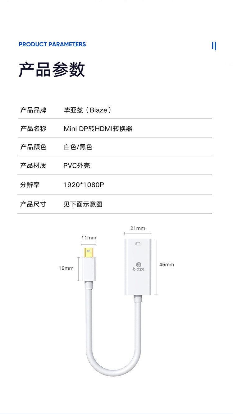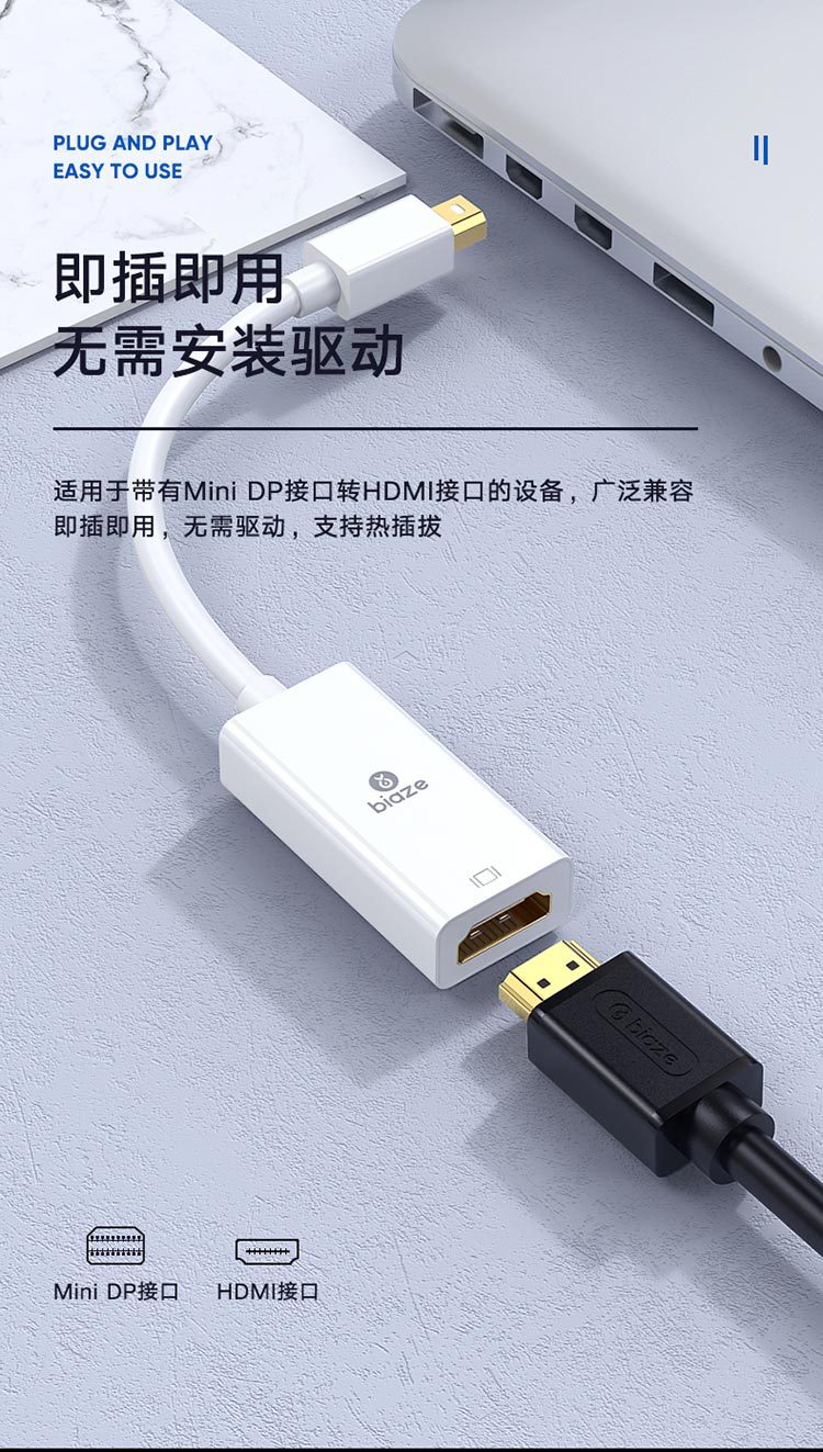 Biaz 미니 DP-HDMI 컨버터 미니 DP 번개 인터페이스 남성 어댑터 케이블 어댑터스토어 가기
