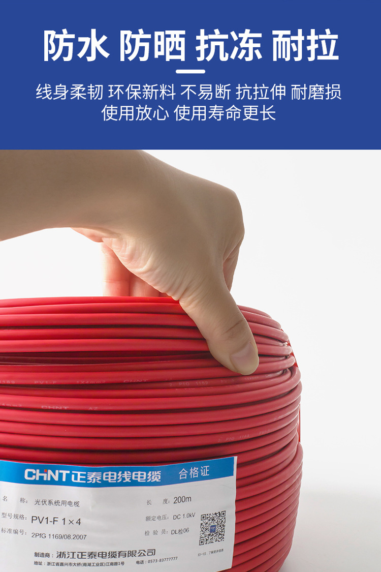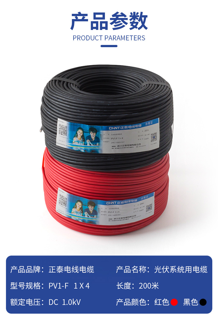 친트 태양광 케이블 PV2.5/4/6 사각 주석 도금 DC 라인 태양 전지 패널 태양광 연결 라인