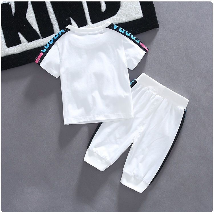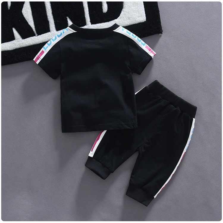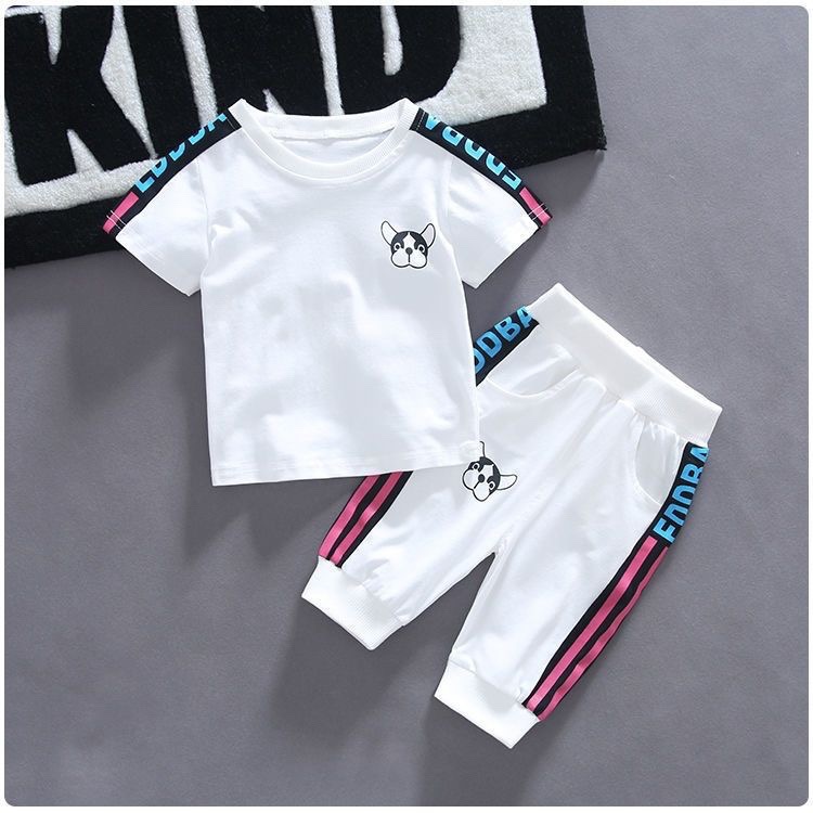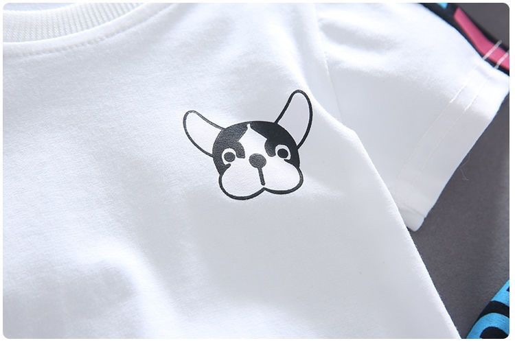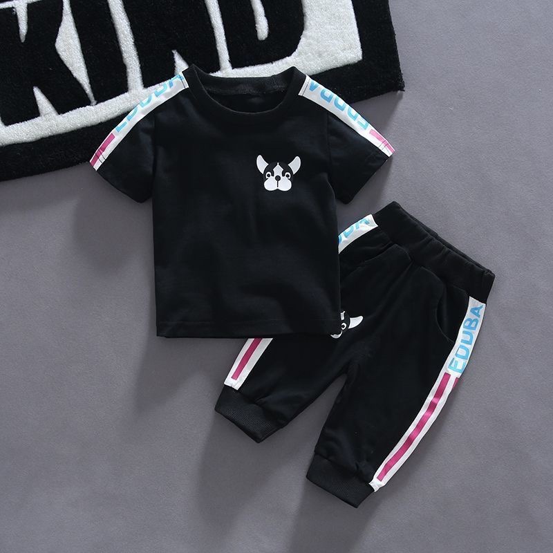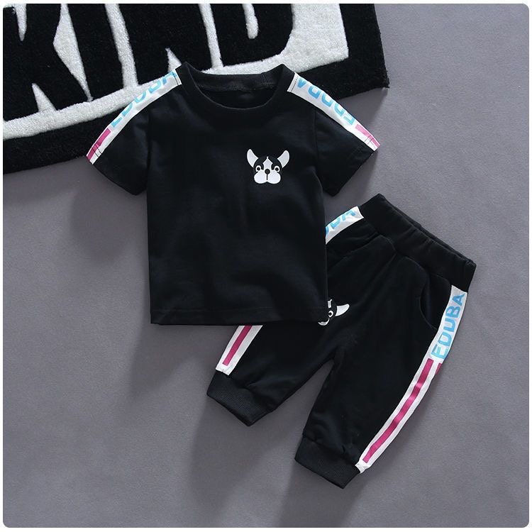 여름 어린이 순면 반팔 세트 남녀 아기 투피스 세트 유아용 흑백 만화 외출복 귀여운