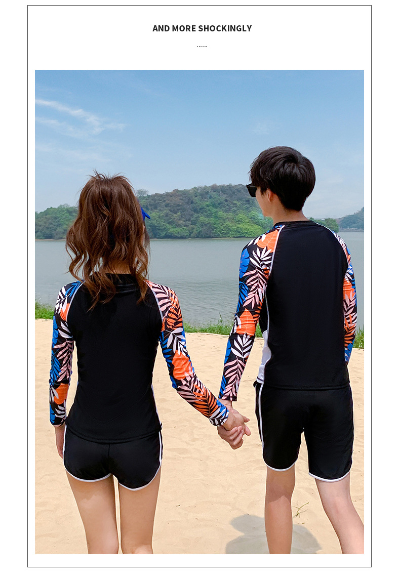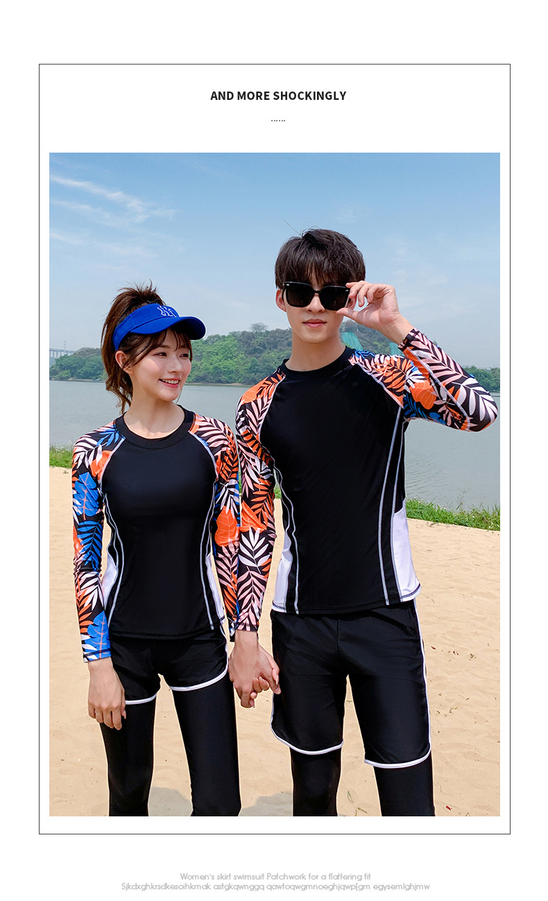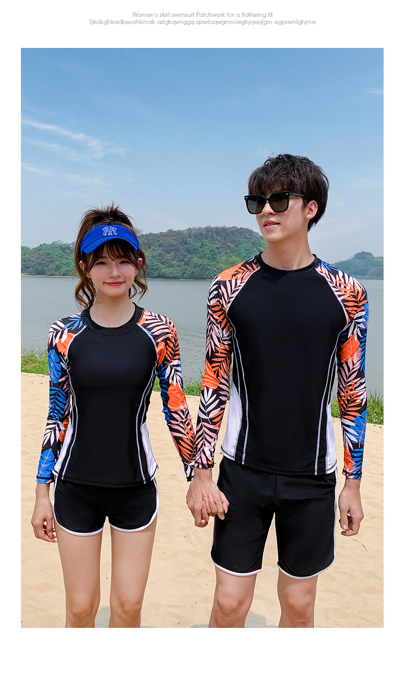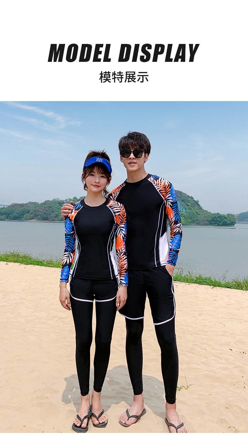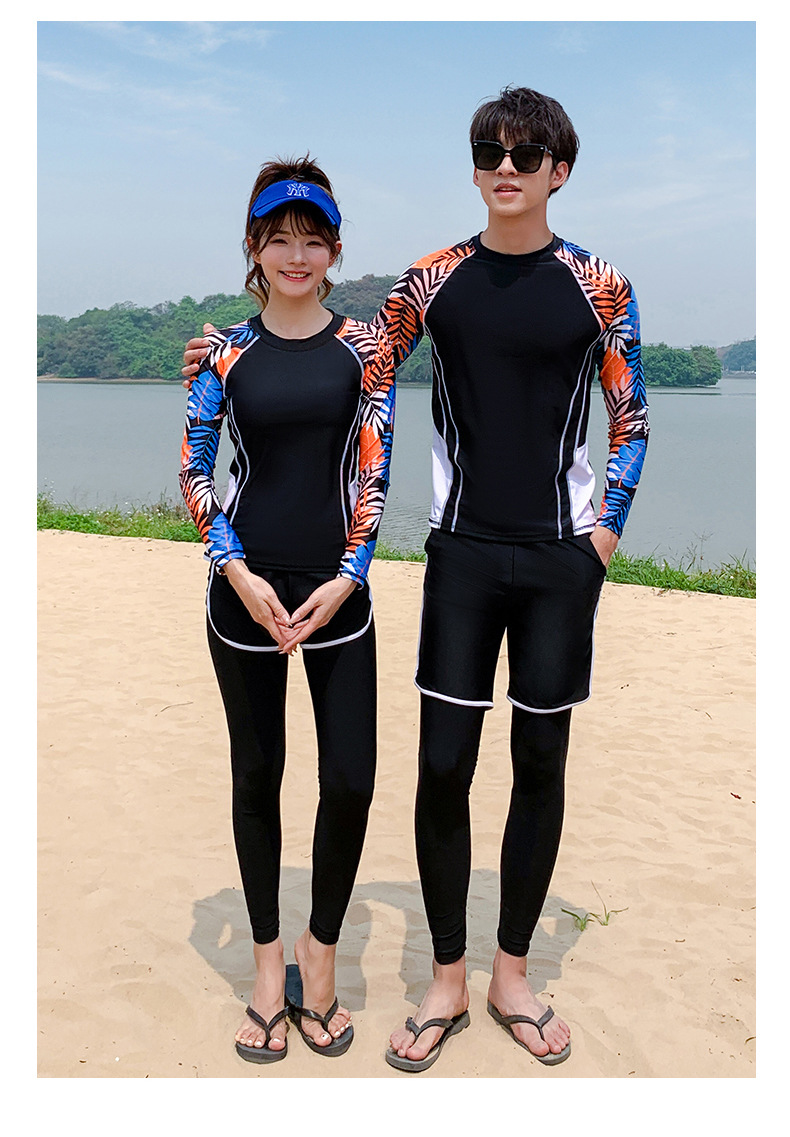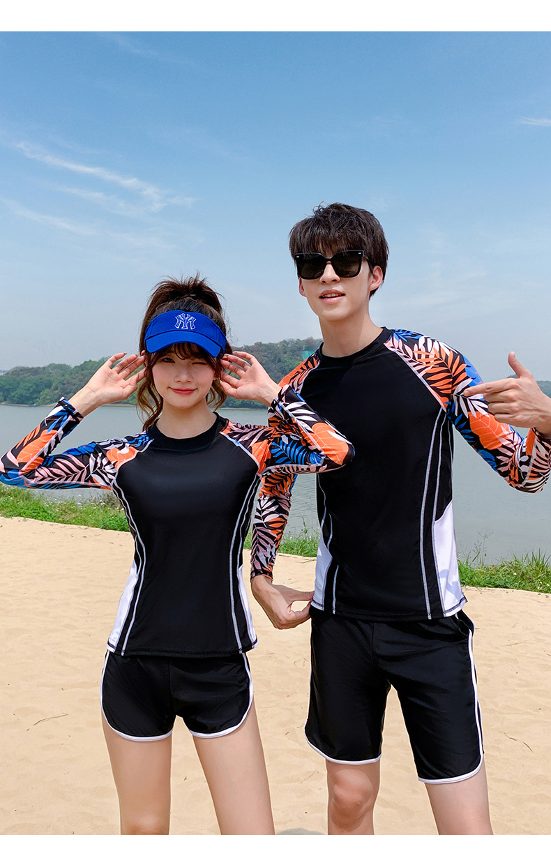 2023 새로운 일본과 한국 커플 긴 소매 반바지 스플릿 쓰리 피스 서핑 세트 플러스 사이즈 스포츠 스노클링 여성용 수영복스토어 가기