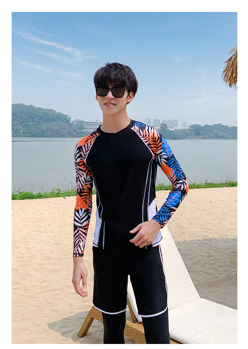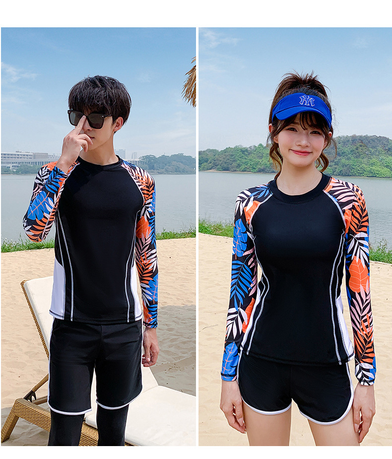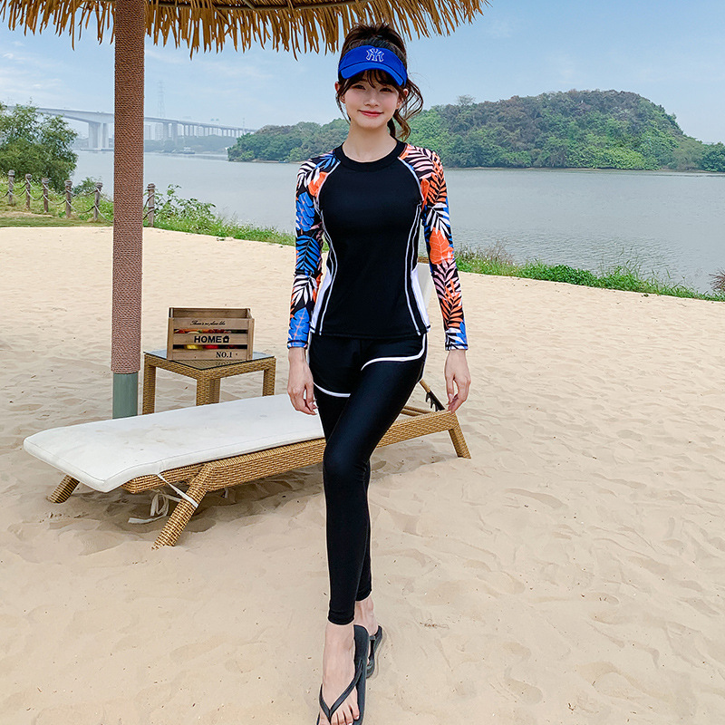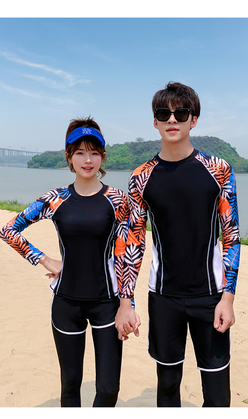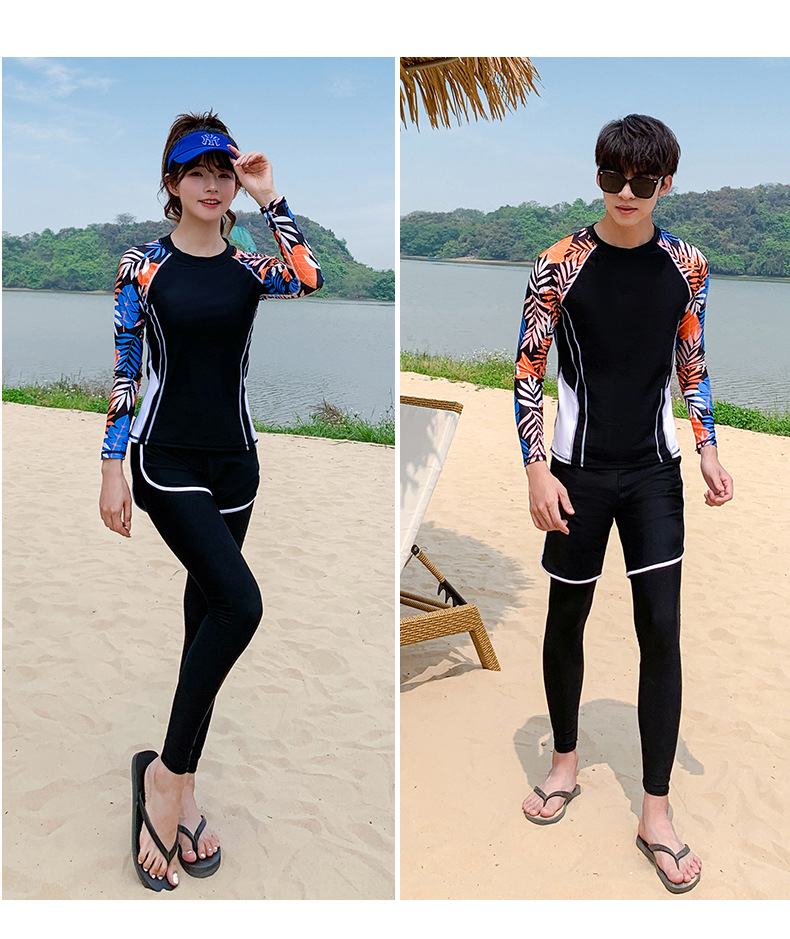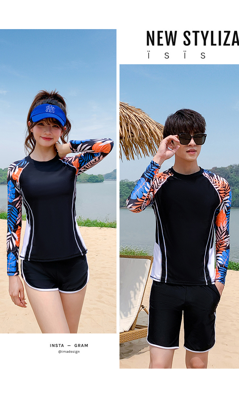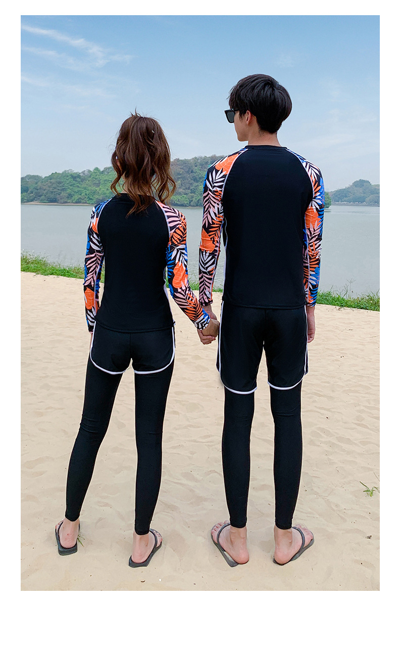 2023 새로운 일본과 한국 커플 긴 소매 반바지 스플릿 쓰리 피스 서핑 세트 플러스 사이즈 스포츠 스노클링 여성용 수영복스토어 가기