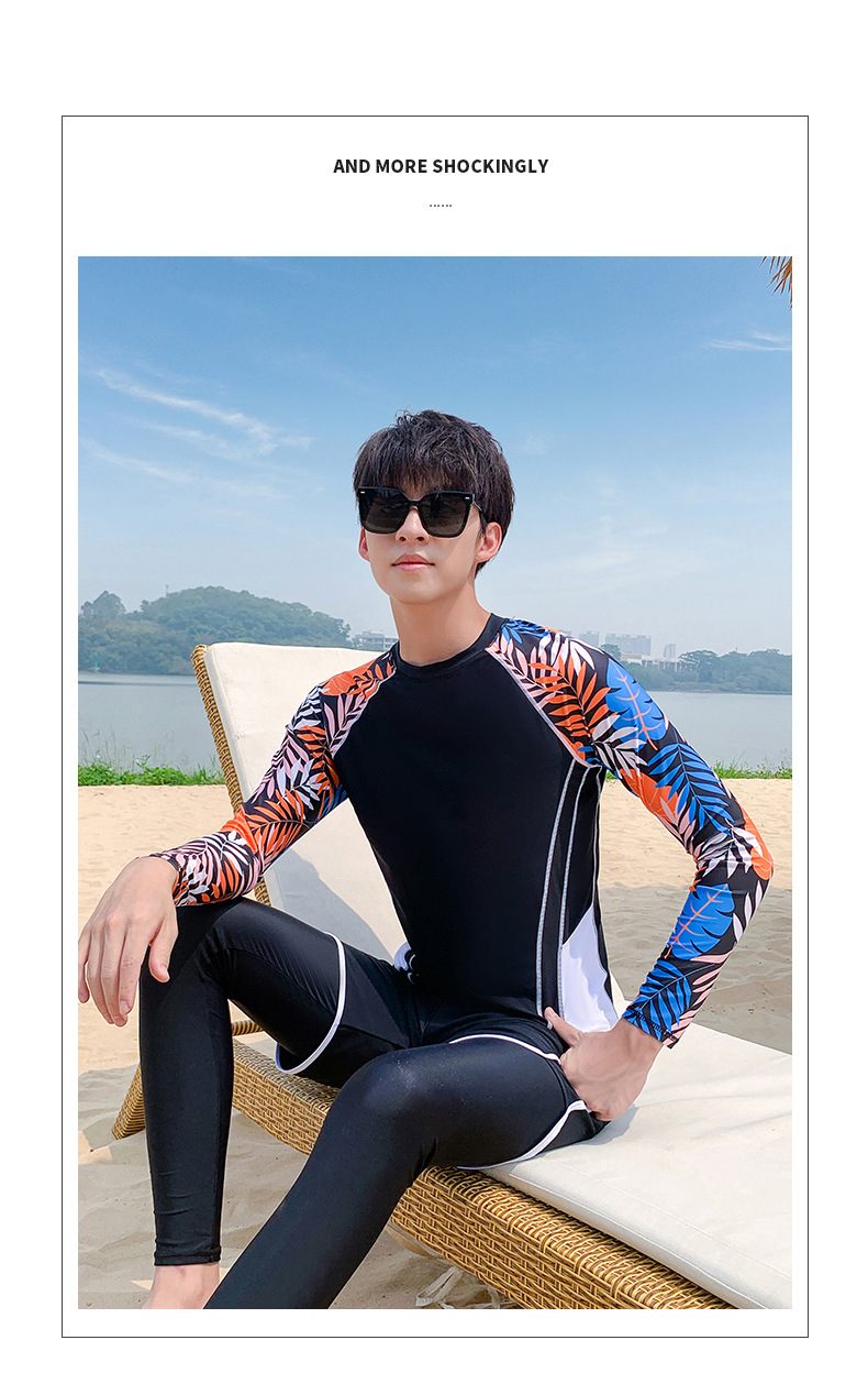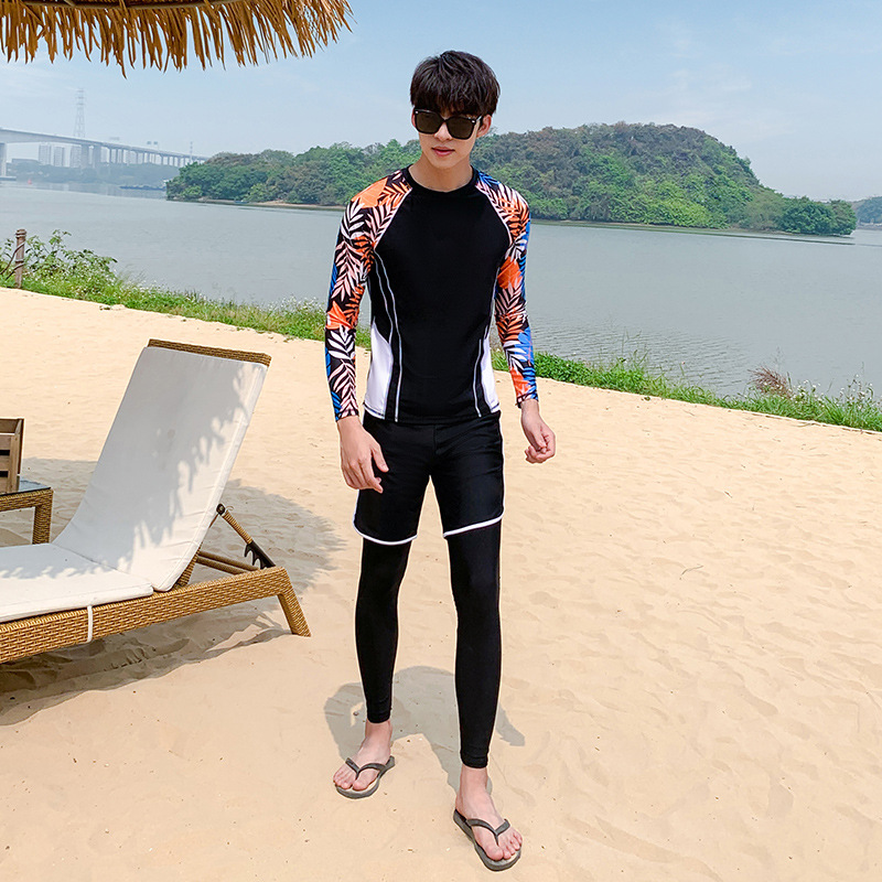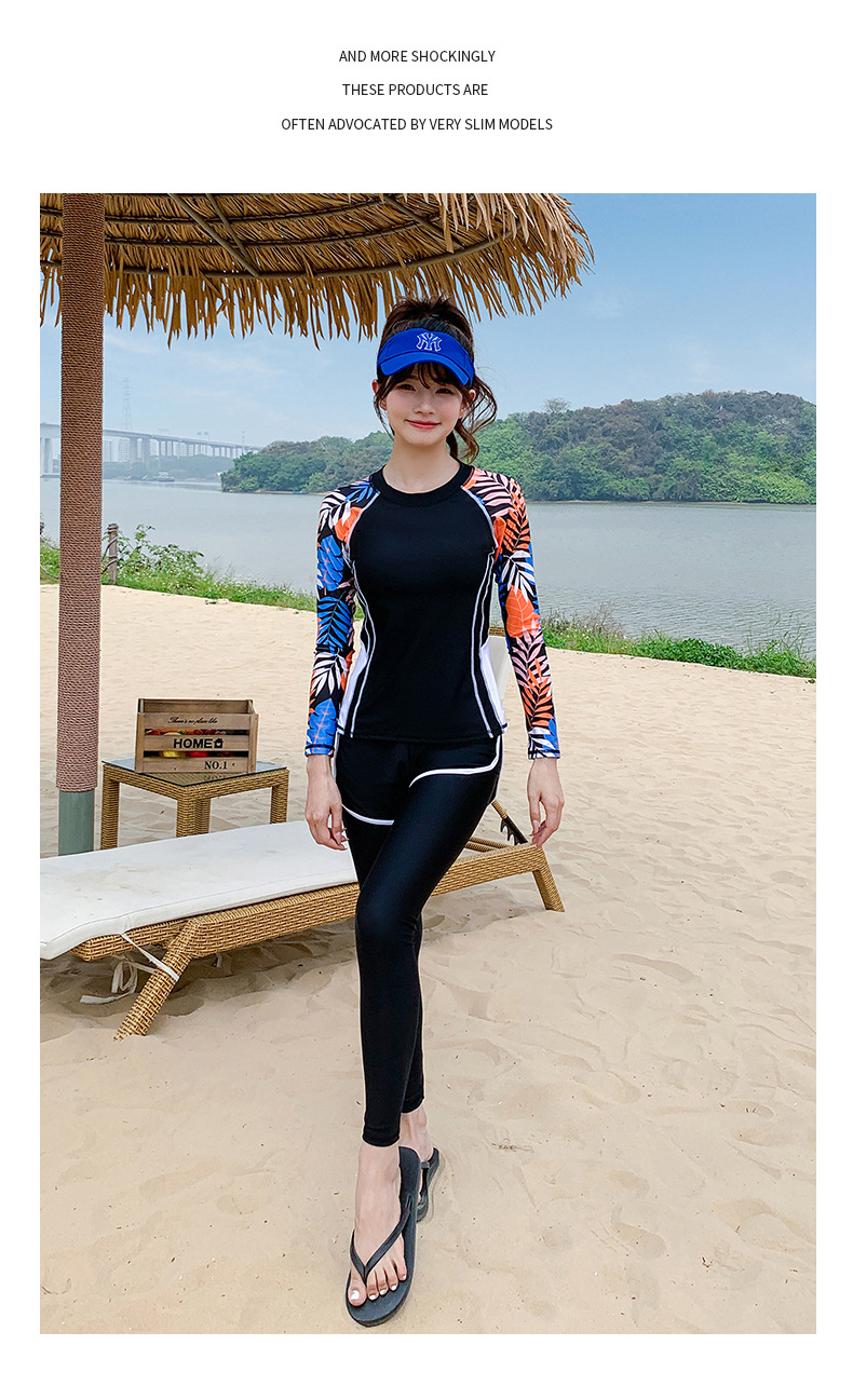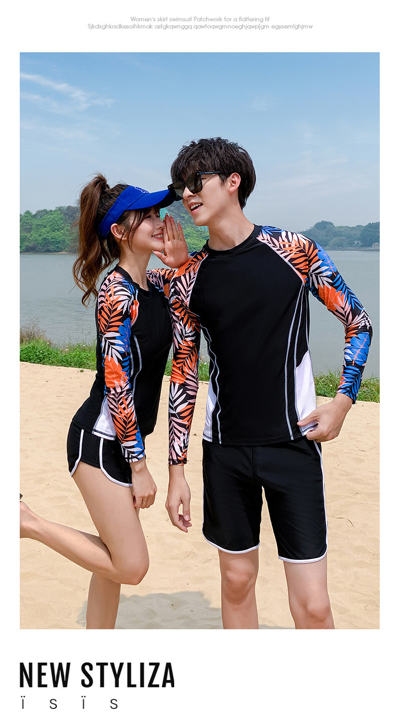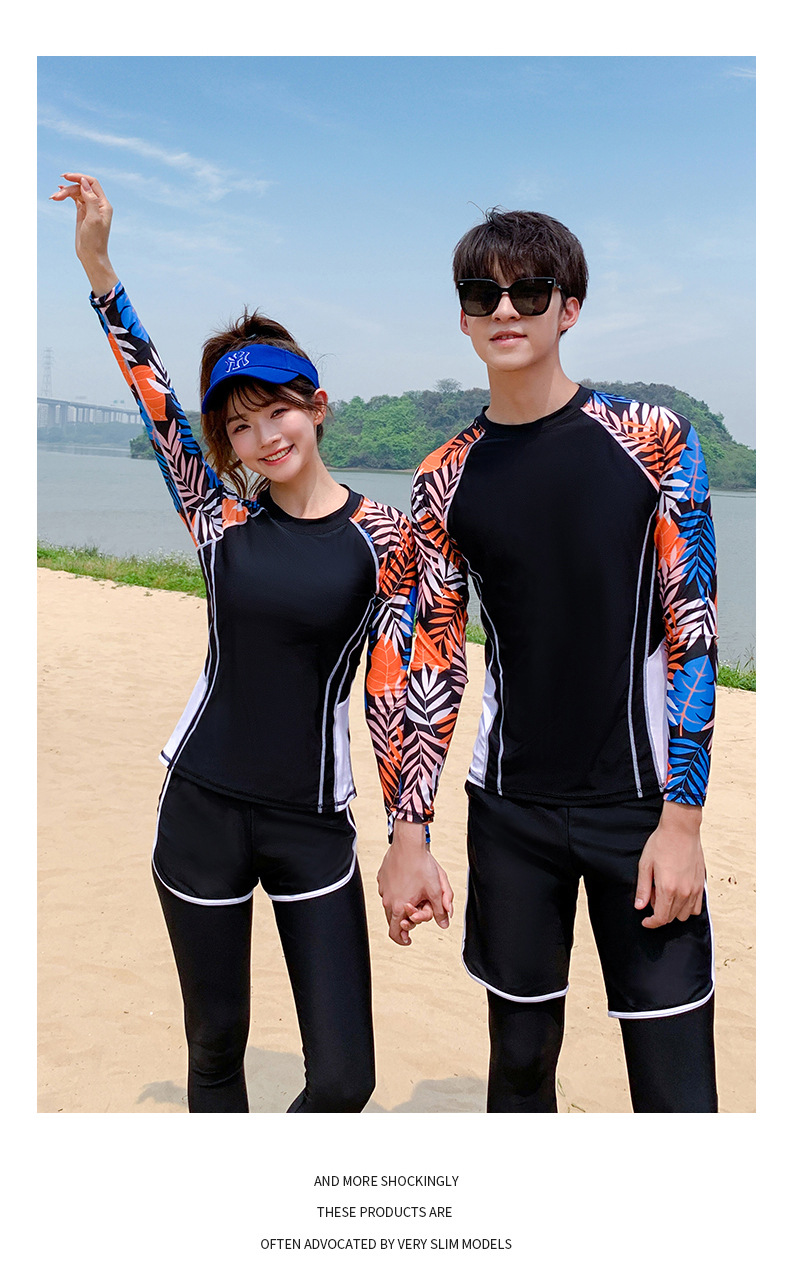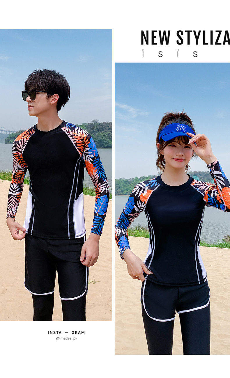 2023 새로운 일본과 한국 커플 긴 소매 반바지 스플릿 쓰리 피스 서핑 세트 플러스 사이즈 스포츠 스노클링 여성용 수영복