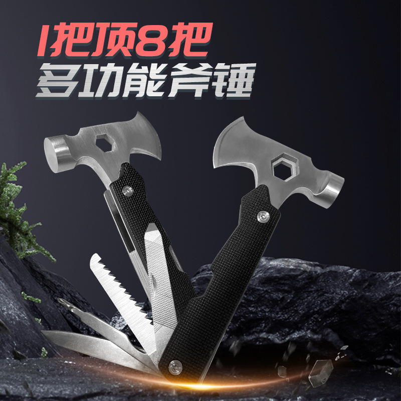 다기능 미니 도끼 망치 야외 다기능 공구 10 대 1 다기능 자동차 안전 망치 인명 구조 망치