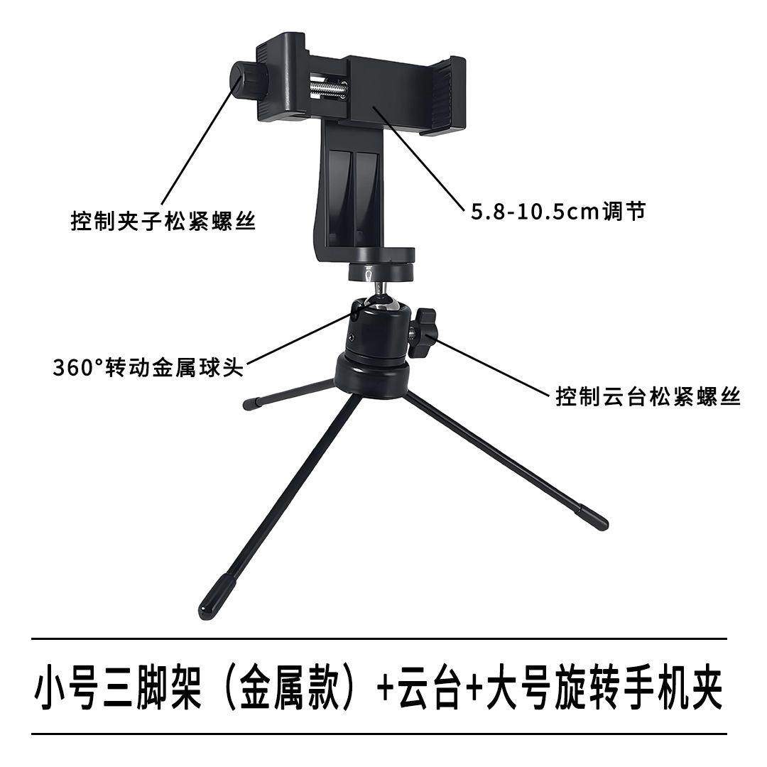 • 소형 삼각대(금속) + 팬/틸트 + 대형 회전식 휴대폰 홀더