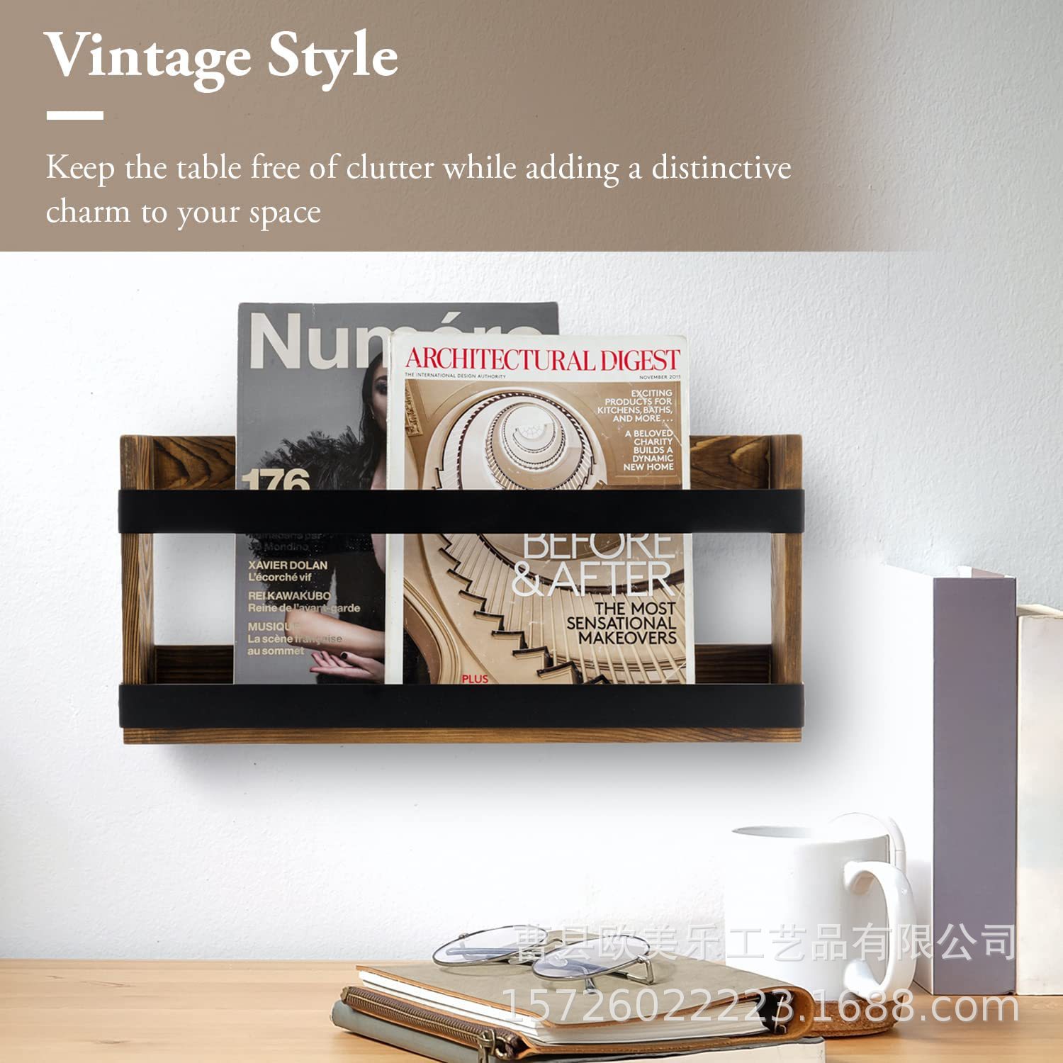단단한 나무 벽 잡지 보관 선반 선반 거실 벽 장식 어린이 방 보관 랙 복고풍 부실한 책장