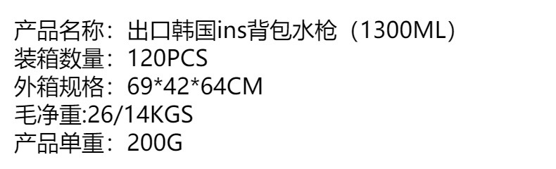 수출 한국 스타일 어린이 배낭 물 총 장난감 소프트 백 물 가방 해변 물 총 물 싸움 풀 아웃 타입스토어 가기