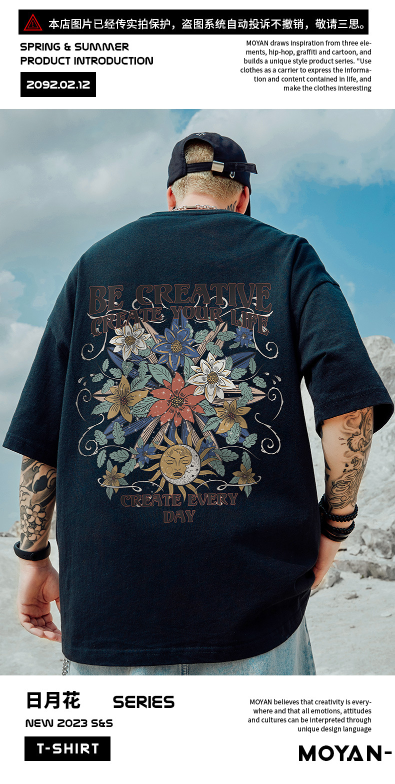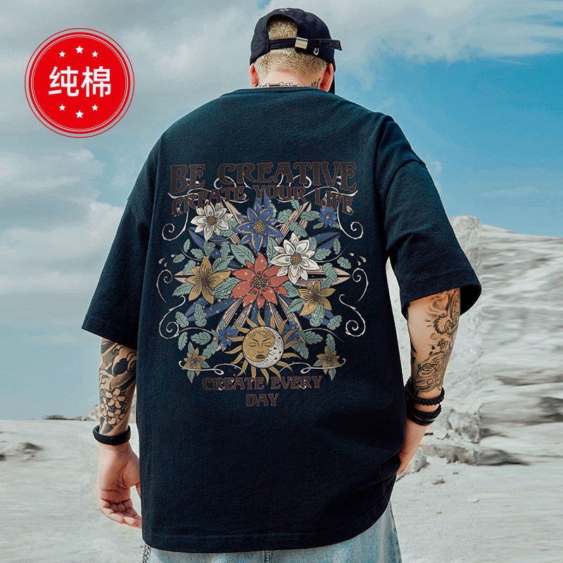 2023 트렌디 브랜드 루즈한 티셔츠 뚱뚱한 남성용 반팔 플러스 사이즈 반팔 퓨어 코튼 트렌디 플러스 사이즈 남성 여름스토어 가기