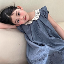 2026春夏季新款童装韩版儿童棉布蕾丝韩系女童娃娃领花边飞袖套装