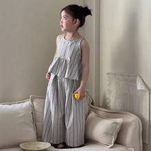 女童套装2026夏季新款透气棉麻洋气时髦儿童吊带背心阔腿裤两件套
