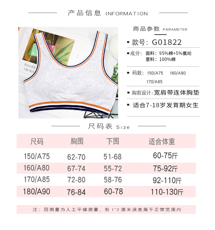 Xinfu 소녀용 브래지어, 여아 속옷, 발달기 조끼, 초등학생, 중학생, 팽팽함 방지, 직판매, 가슴을 더 작아 보이게 해줍니다.스토어 가기