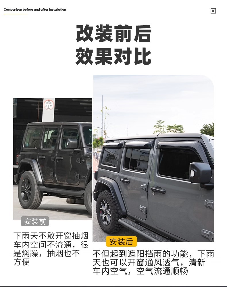 07-23 랭글러 JK/JL/JT 검투사 윈도우 레인 실드 JEEP JEEP 레인 눈썹 수정용스토어 가기