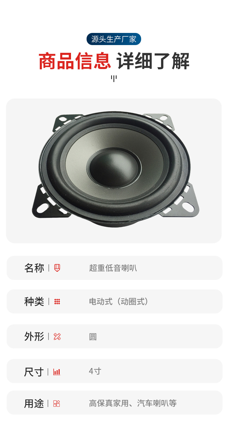 자동차 스피커 4 인치 오디오 스피커 슈퍼베이스 오디오 자동차 수정 오디오 고출력 서브 우퍼 세트