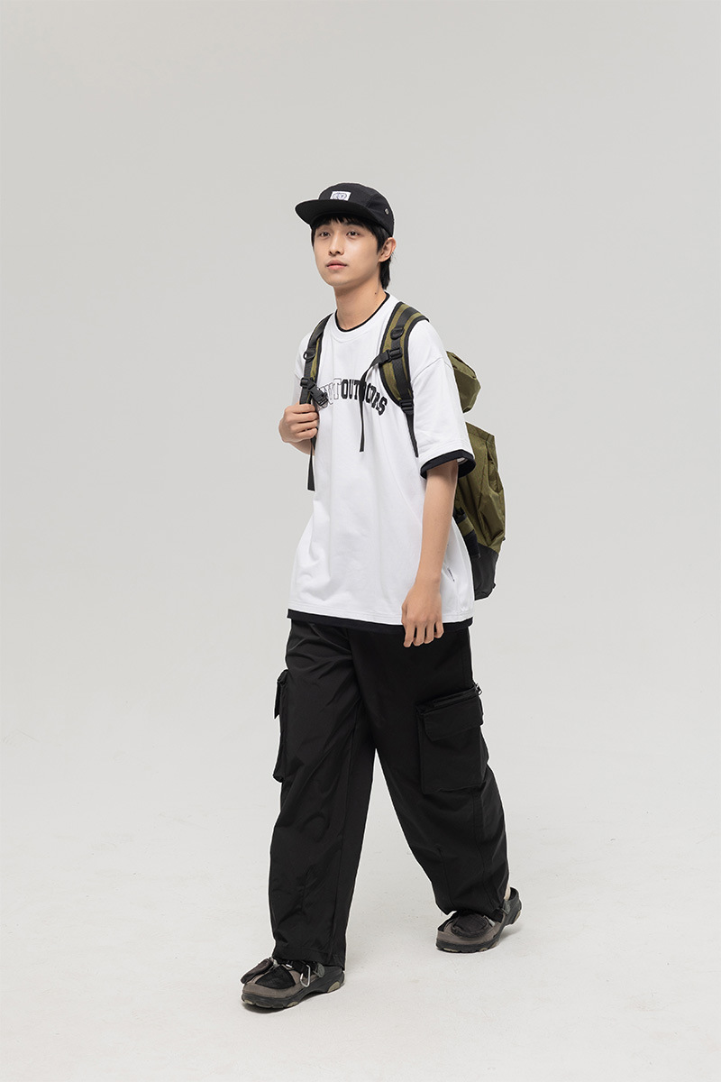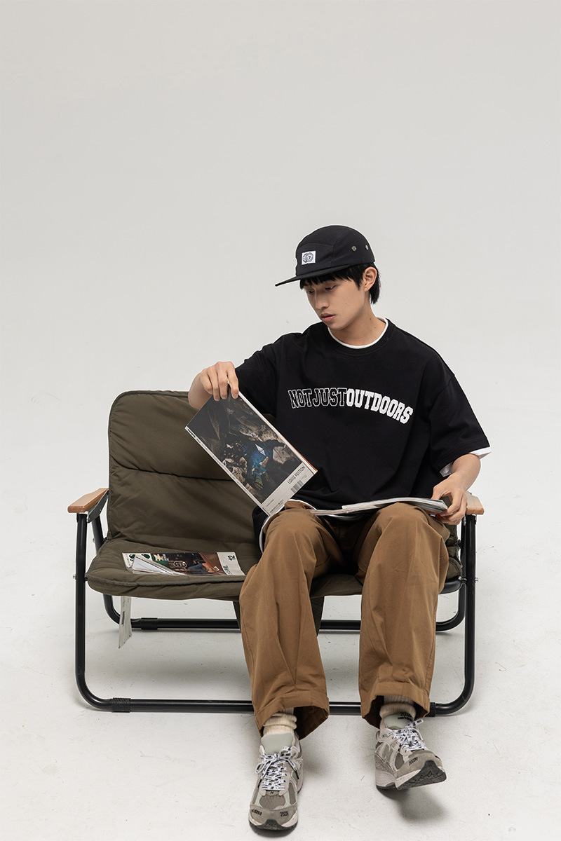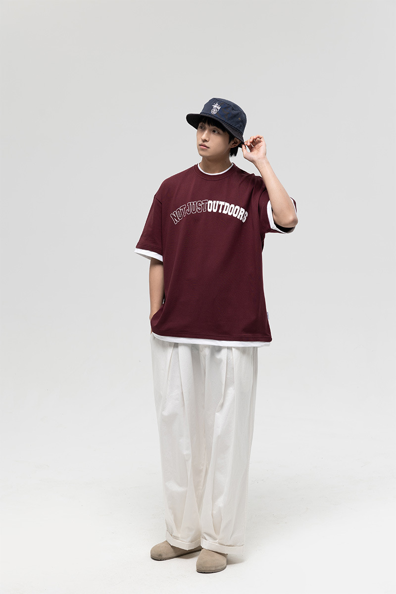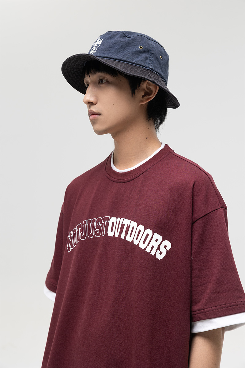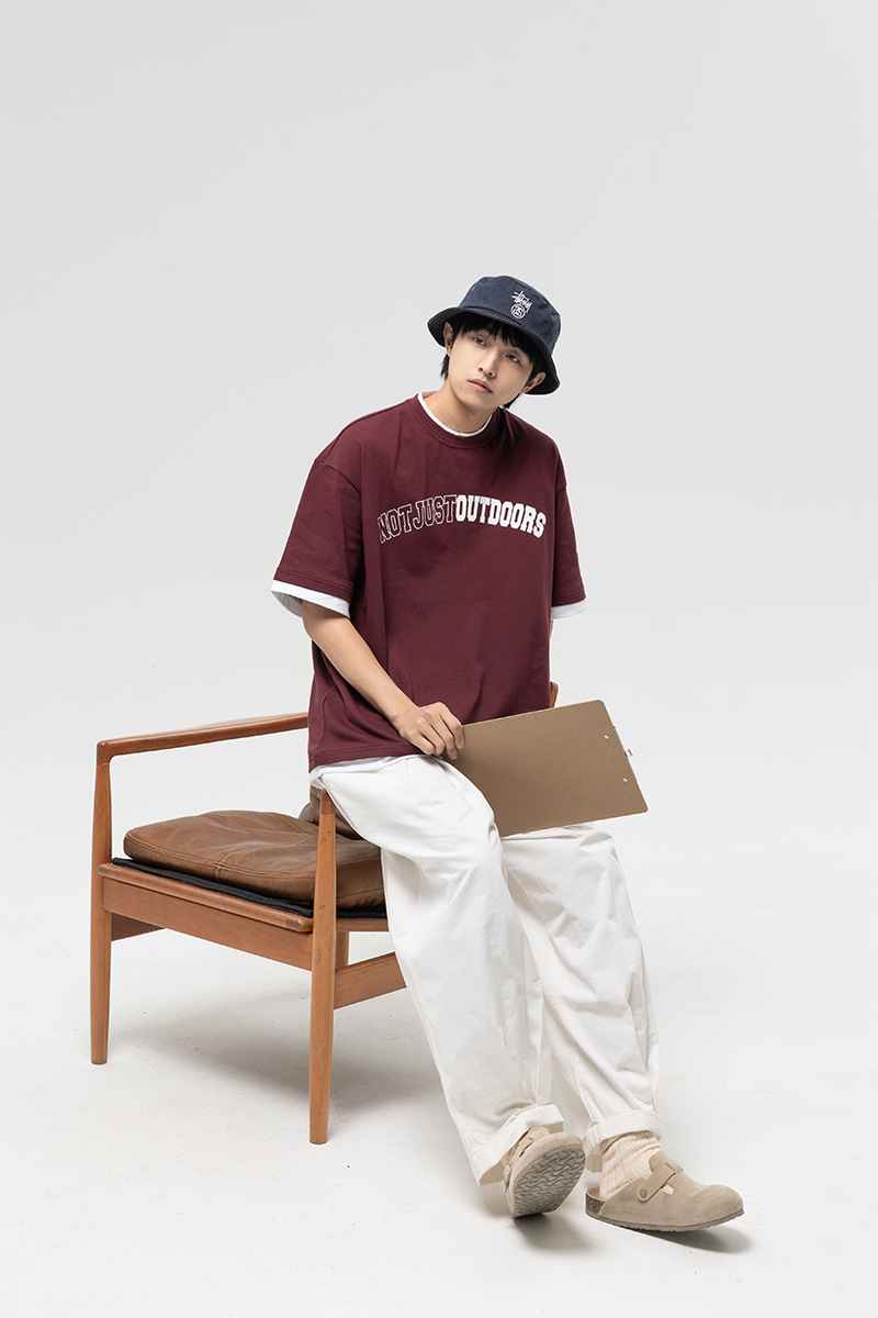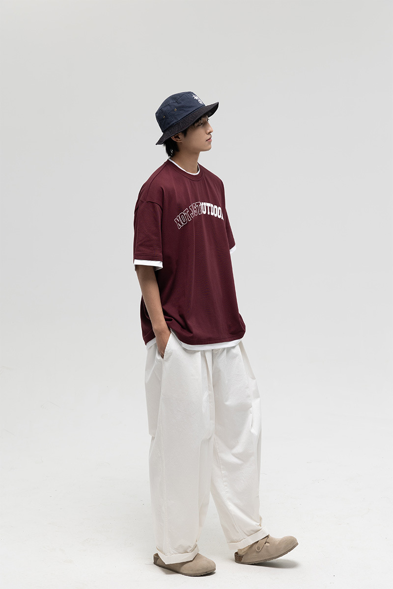 ATBORDER 여름 신작 솔리드 컬러 레터 프린트 라운드 넥 티셔츠 남성용 일본 패션 가짜 투피스 반팔 루즈스토어 가기