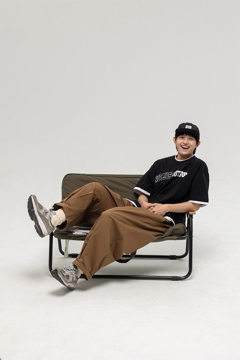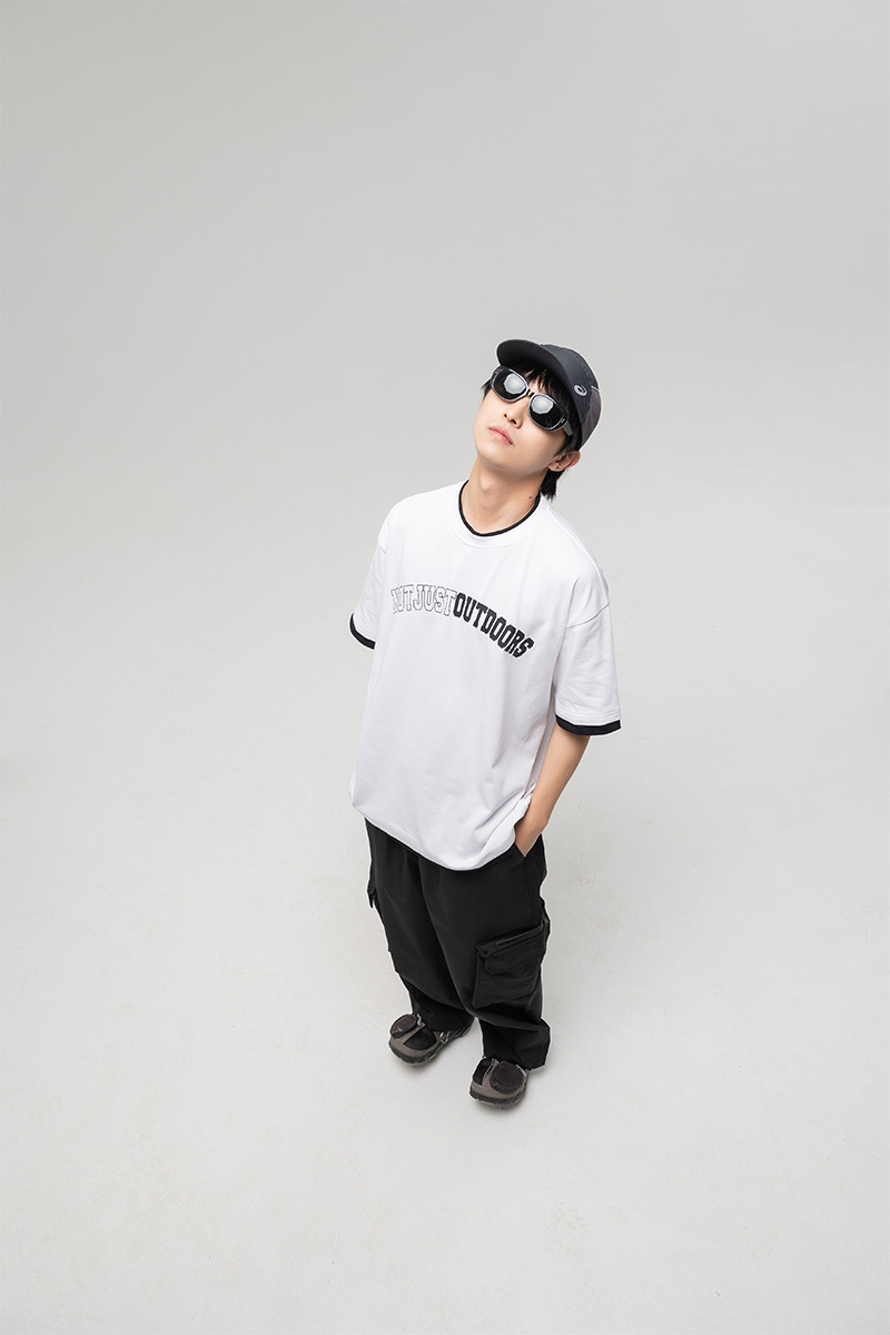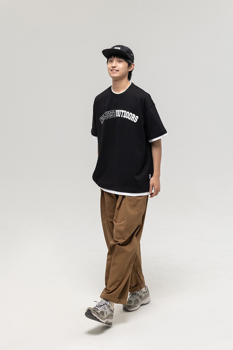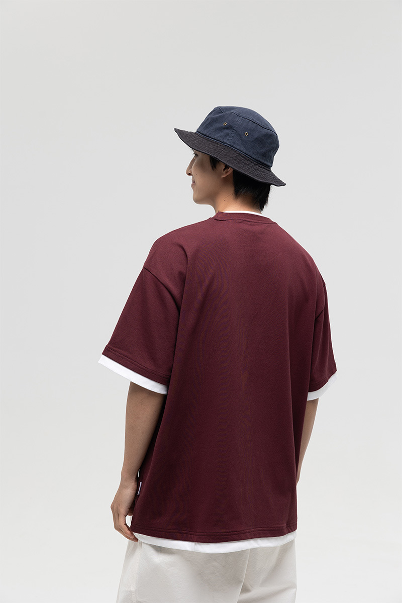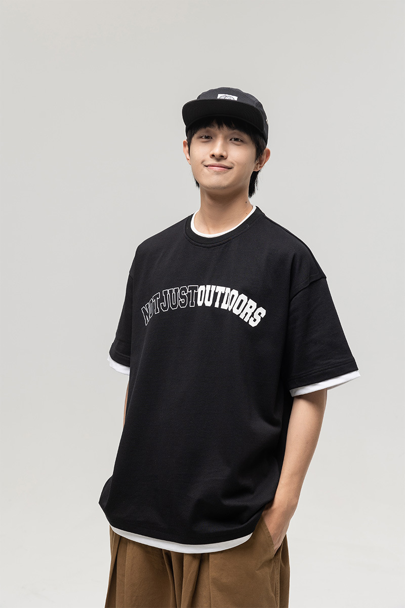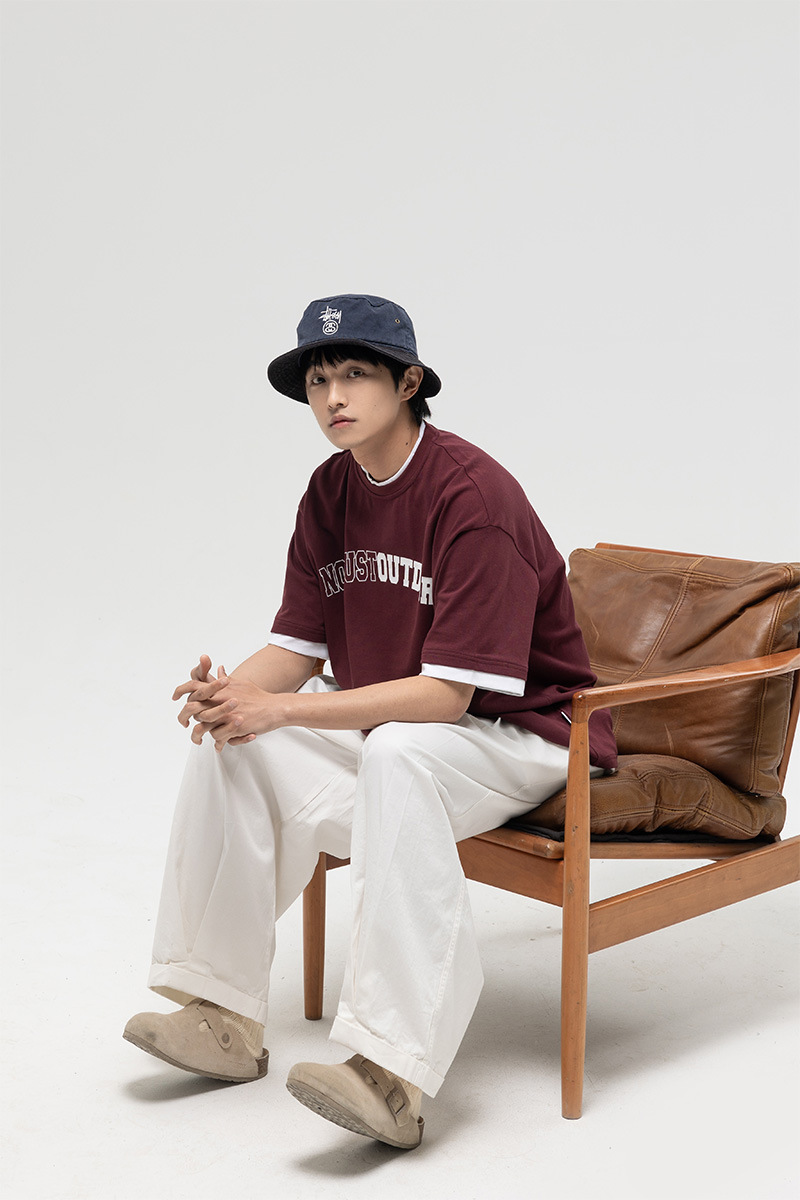 ATBORDER 여름 신작 솔리드 컬러 레터 프린트 라운드 넥 티셔츠 남성용 일본 패션 가짜 투피스 반팔 루즈스토어 가기
