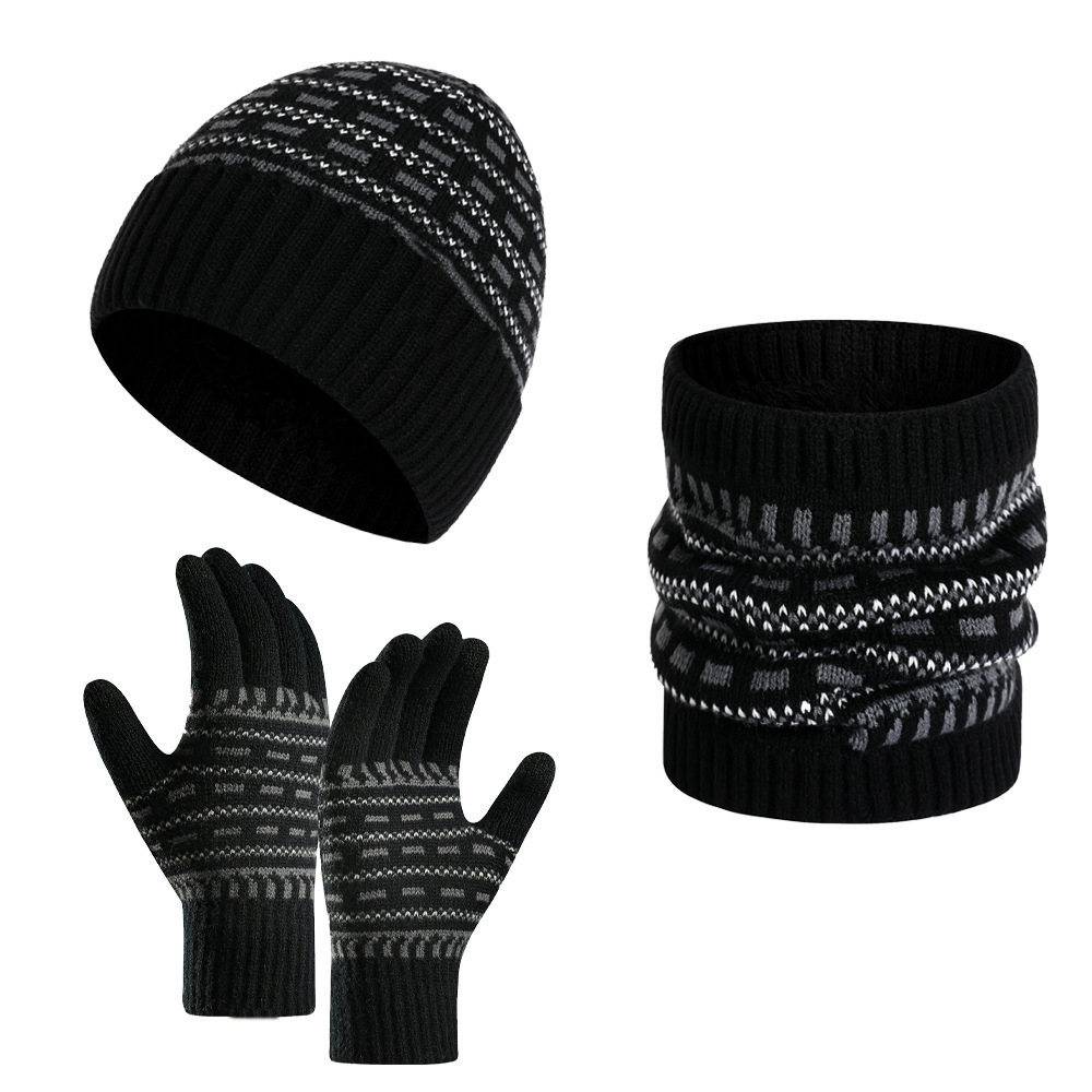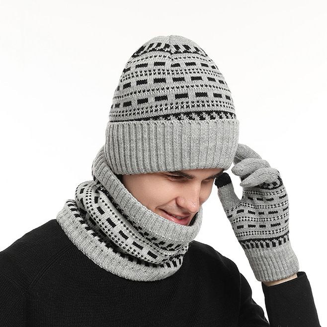 유럽과 미국 사이로 수출되는 가을 겨울 남성용 따뜻한 모직 모자, 두꺼운 니트 방한 성인 모자, 스카프, 장갑 3종 세트