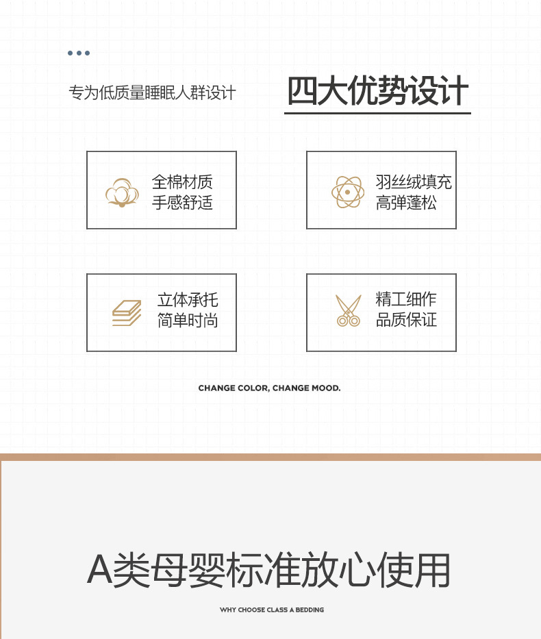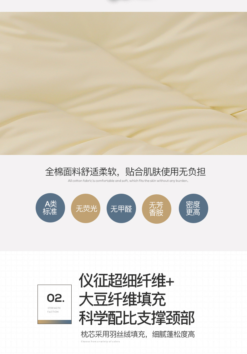 • [싱글] 성인 양측 베개-하이 [클래스 A 패브릭 + 10% 대두]