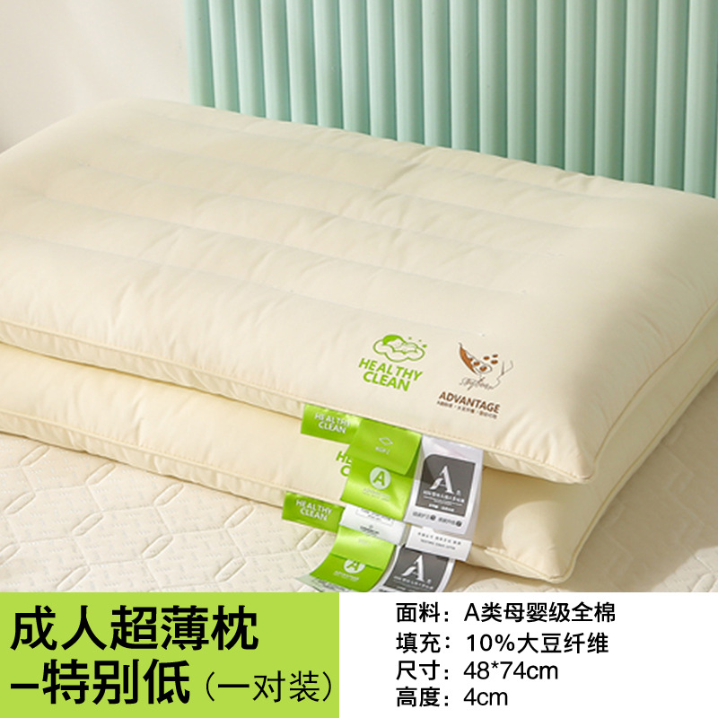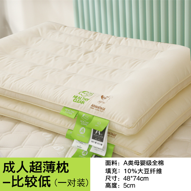 • [쌍] 성인 초박형 베개-특히 낮음 [클래스 A 패브릭 + 10% 대두]