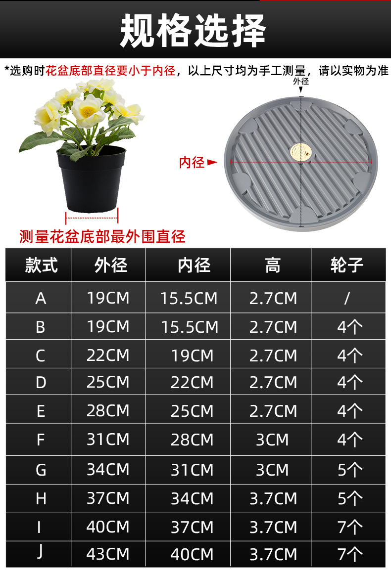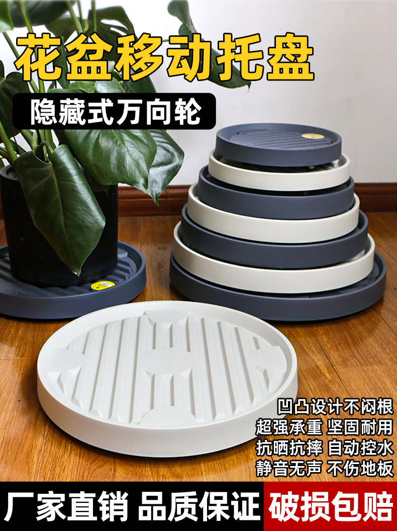 바퀴가 달린 화분 모바일 트레이 초대형 심화 녹색 식물베이스 숨겨진 범용 휠 플라스틱 원형 물 트레이스토어 가기