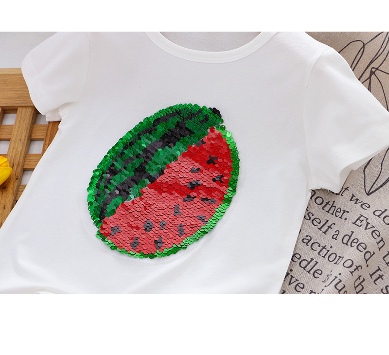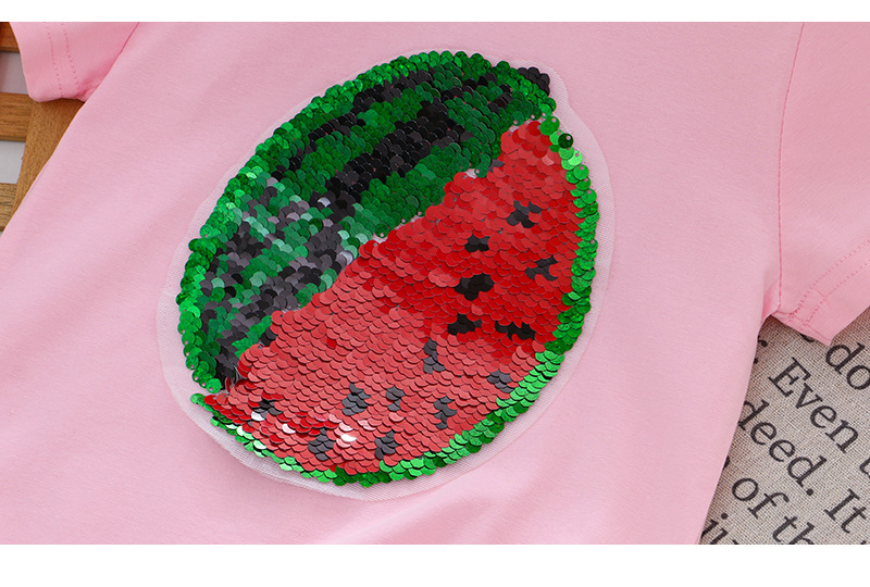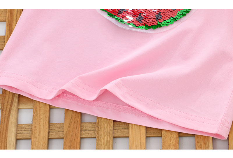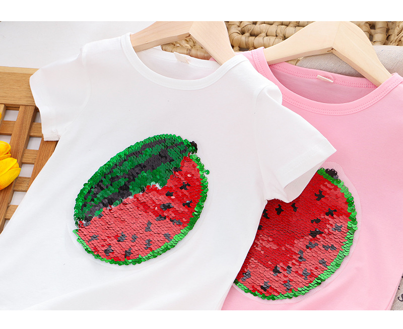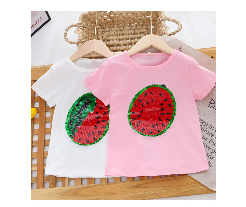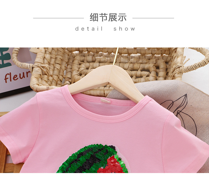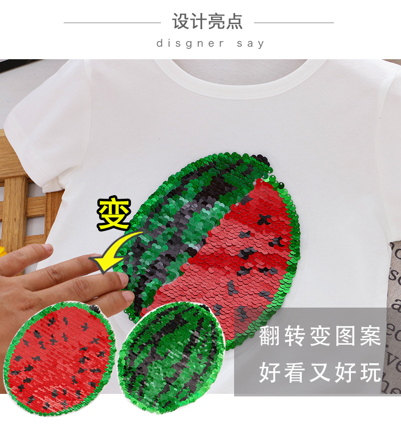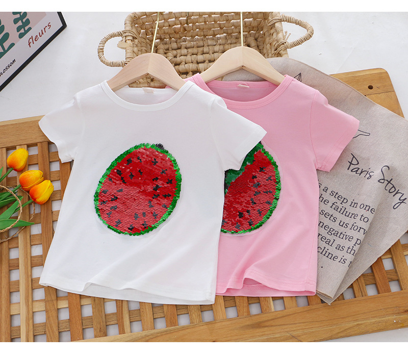 여자 반팔 티셔츠 아동 의류 여름 어린 소녀 딸기 색상 변경 스팽글 티셔츠 아동상의 코튼 라이브 방송 드롭 배송