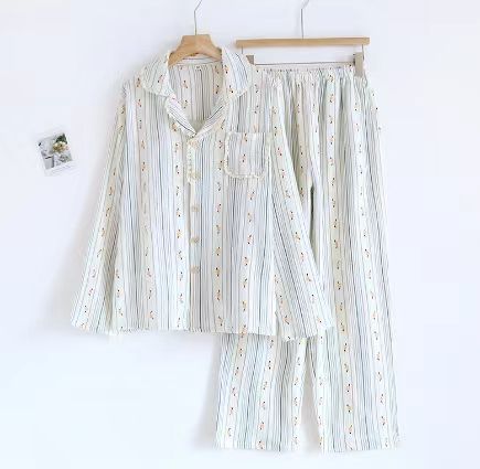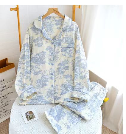 봄과 여름 새로운 면사 잠옷 꽃 바다 소녀 달콤한 스타일 홈 의류 카디건 잠옷 캐주얼 긴 소매 플러스 사이즈 세트스토어 가기