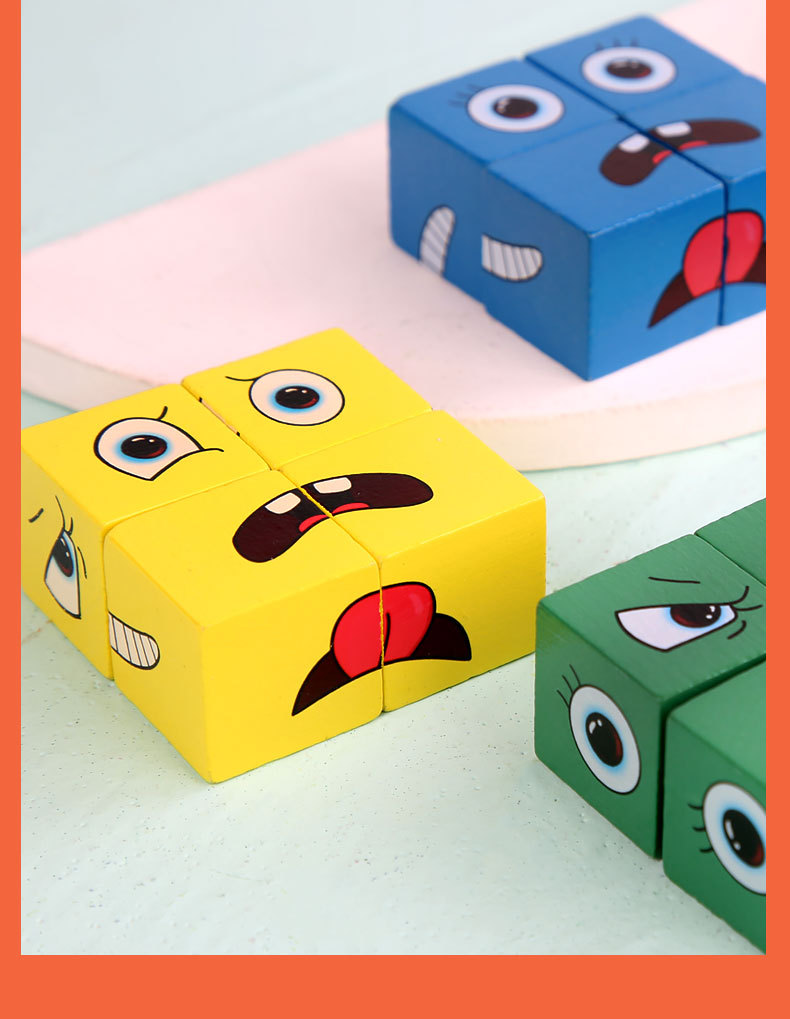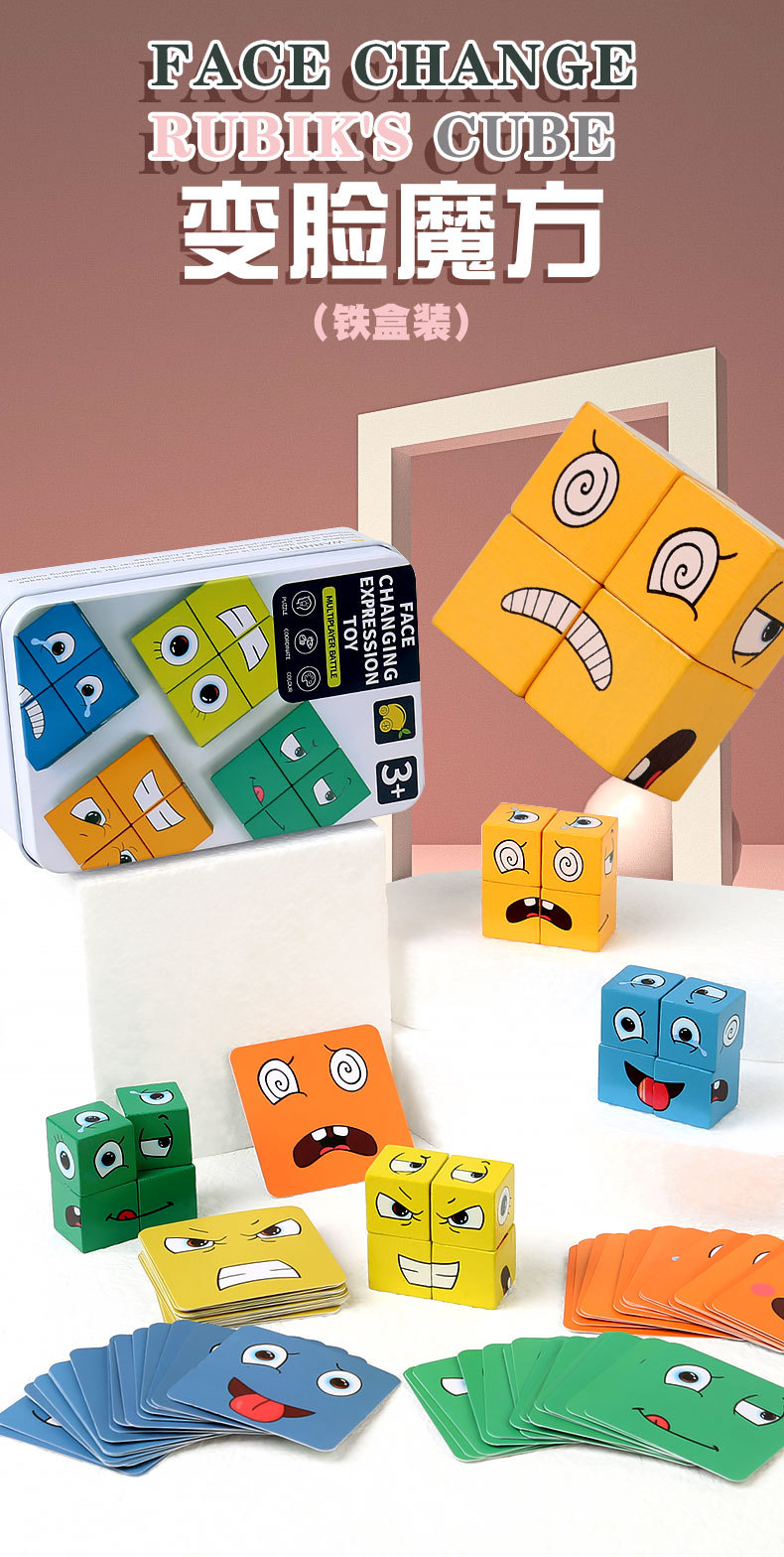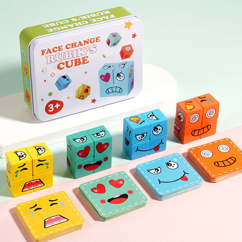 크로스 보더 핫 셀링 어린이 나무 2 인용 배틀 벨 스타킹 나무 조기 교육 완구 얼굴을 바꾸는 표정 루빅스 큐브