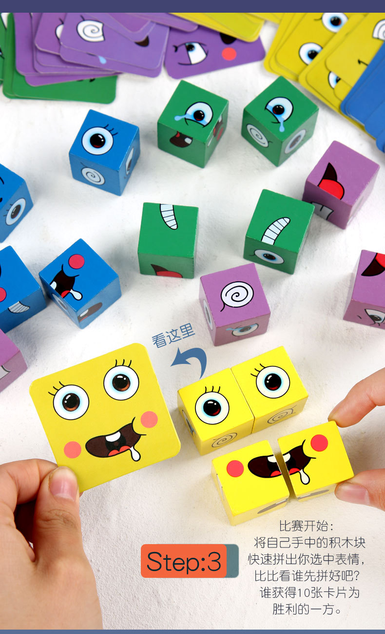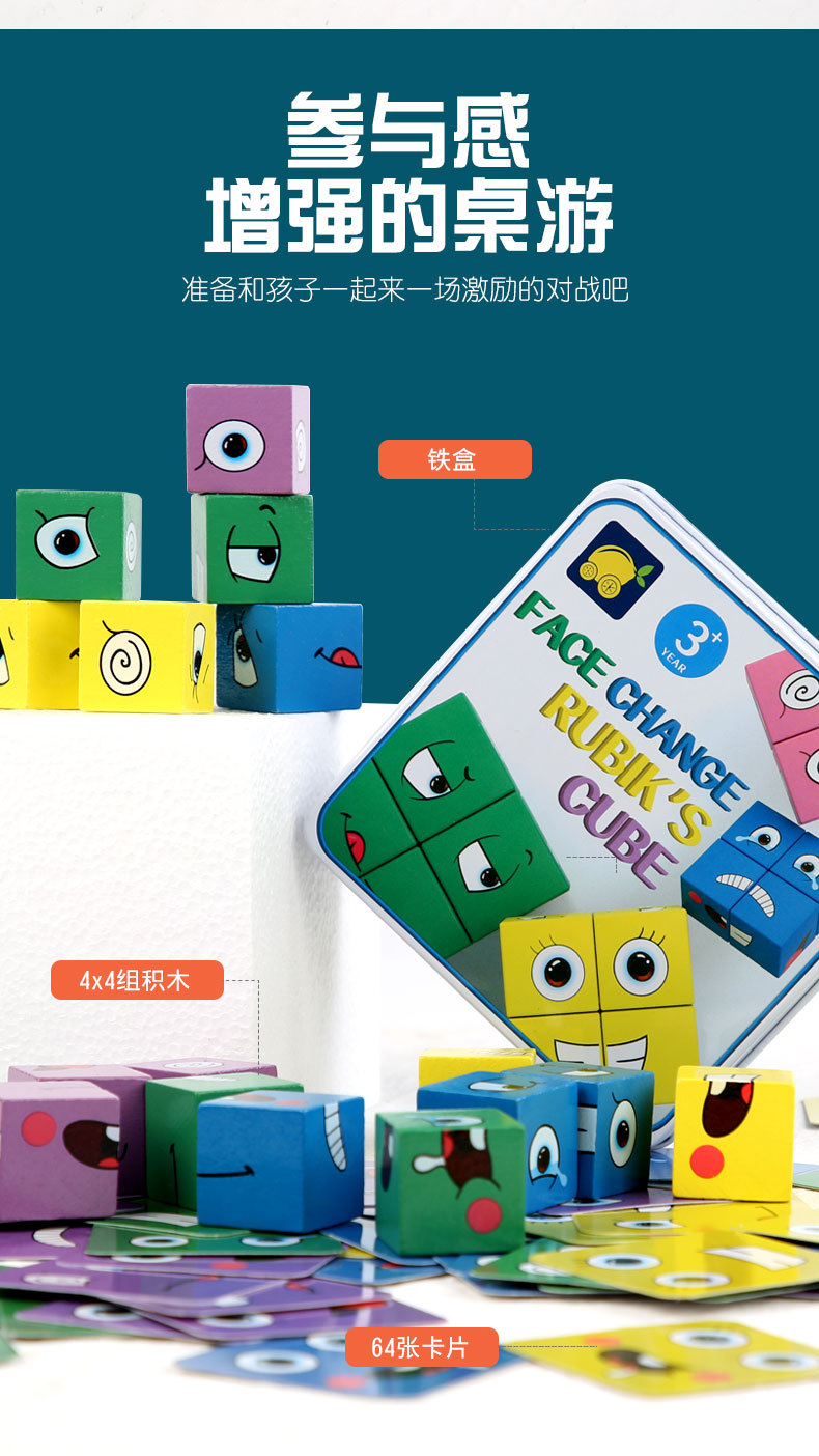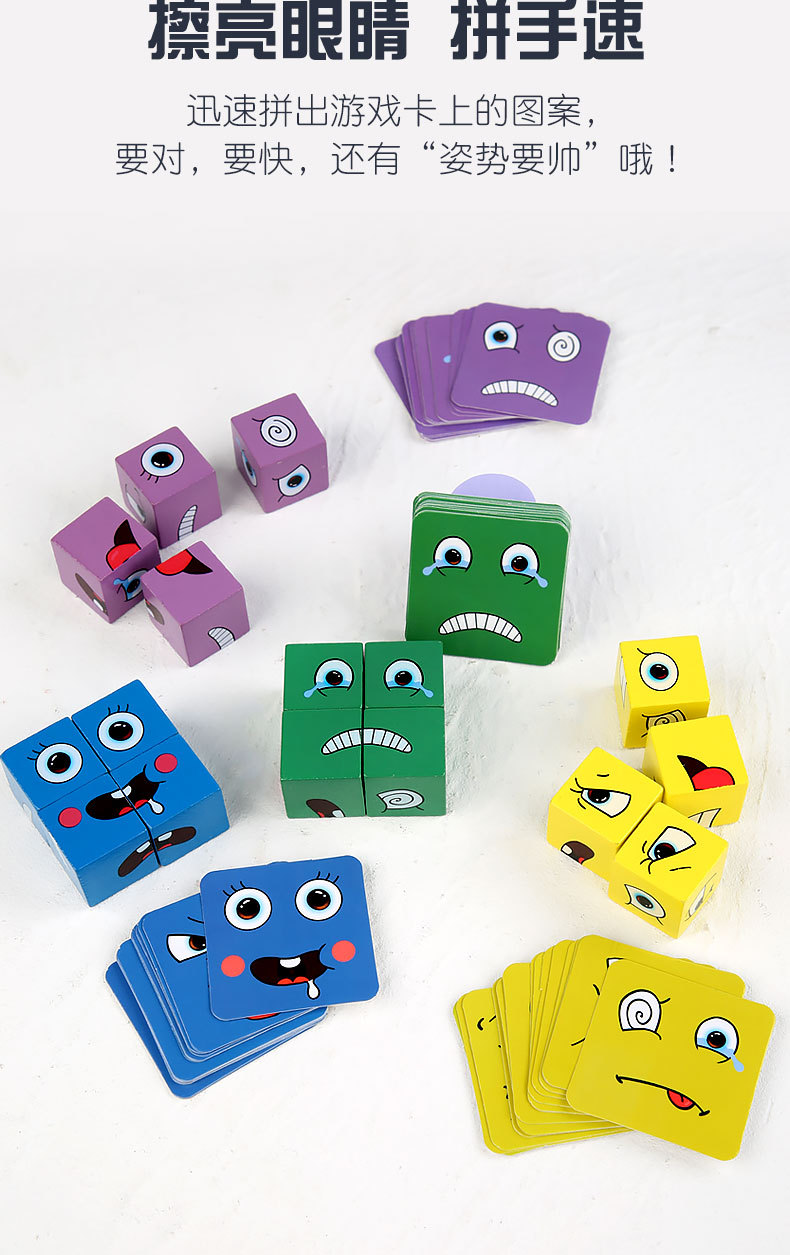 크로스 보더 핫 셀링 어린이 나무 2 인용 배틀 벨 스타킹 나무 조기 교육 완구 얼굴을 바꾸는 표정 루빅스 큐브스토어 가기