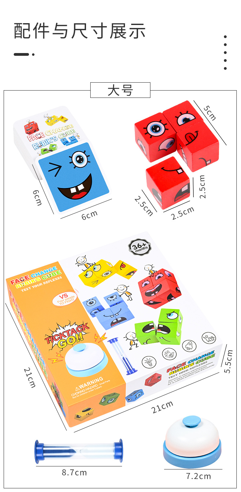 • 대형 얼굴 변화 루빅스 큐브 [벨 + 모래 시계 포함]