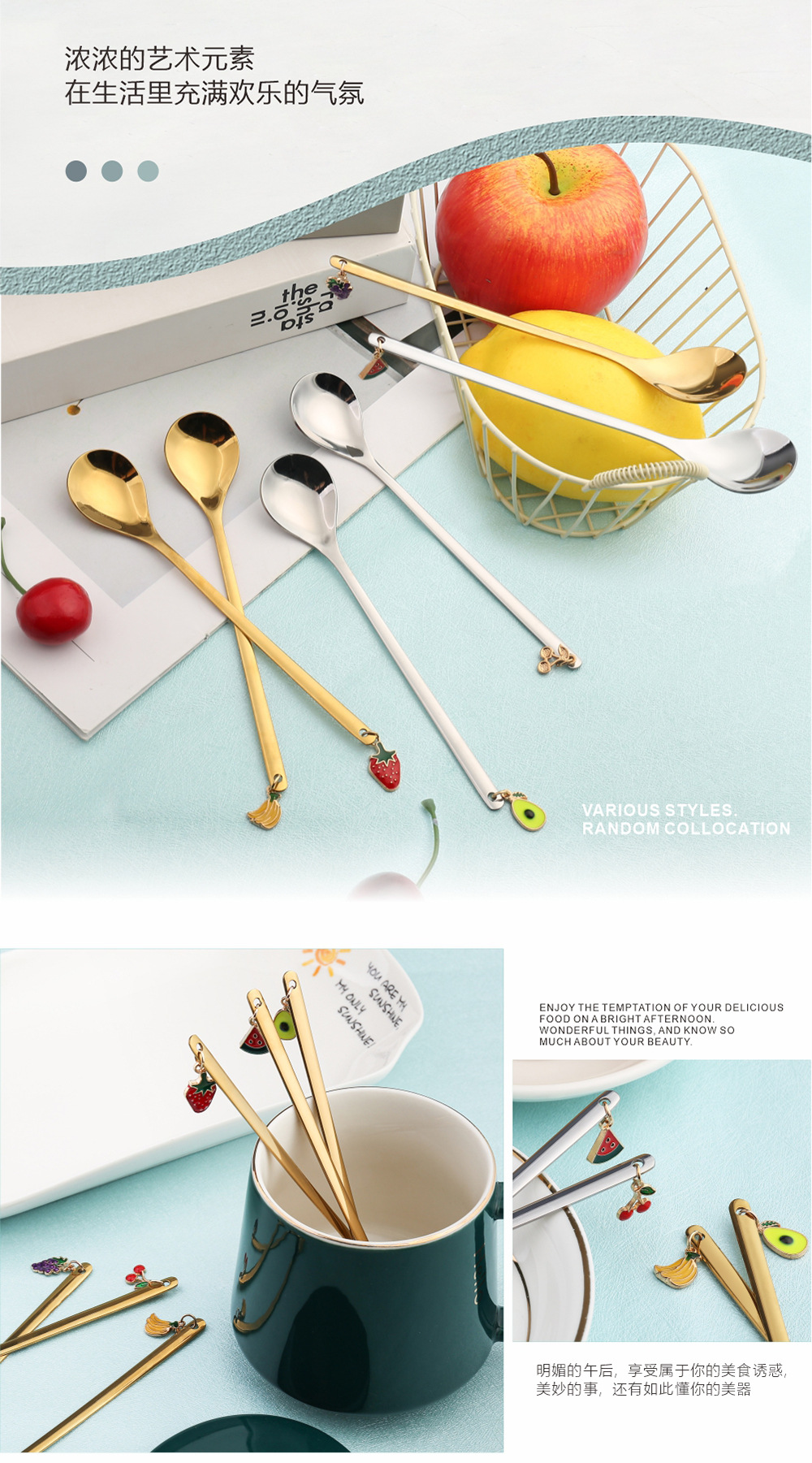 스테인레스 스틸 과일 펜던트 스푼 크리 에이 티브 만화 커피 믹싱 스푼 귀여운 크리스마스 디저트 스푼 식기 세트스토어 가기