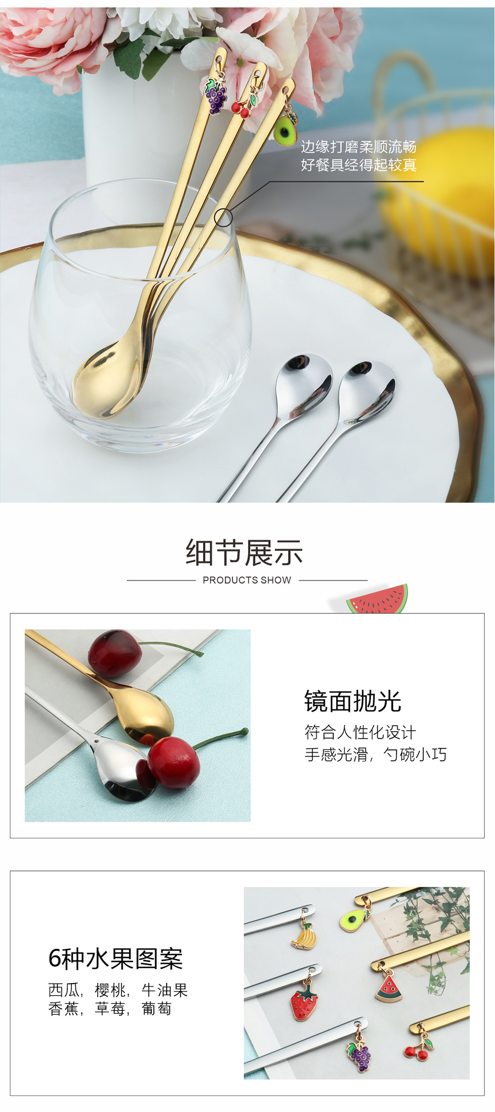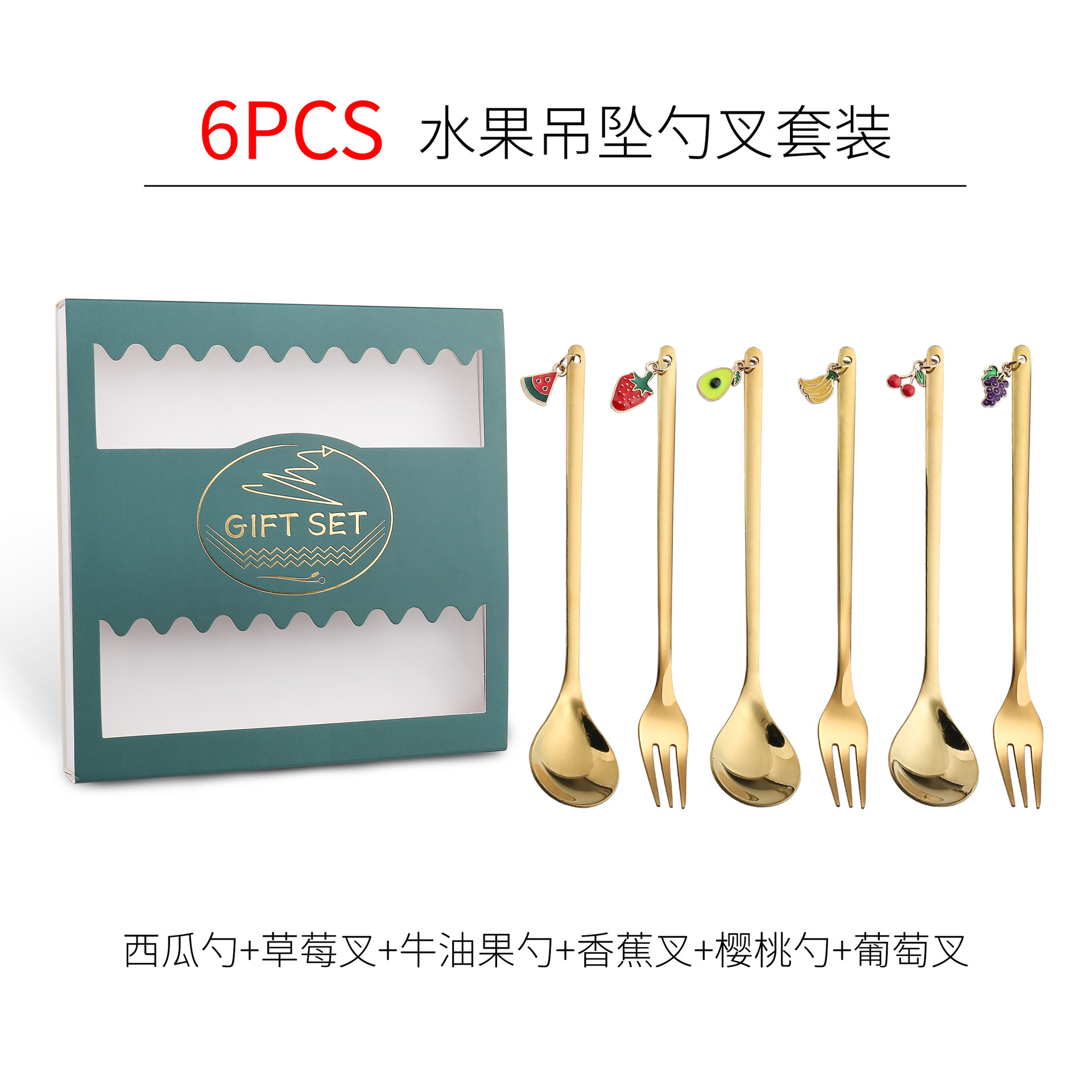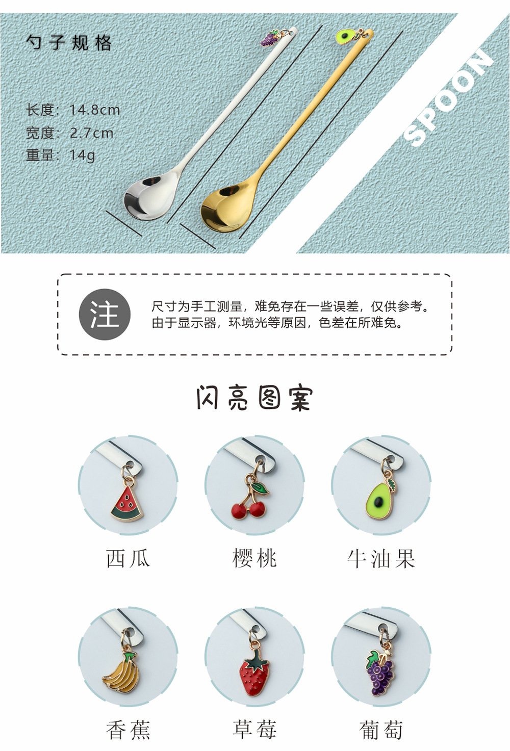 스테인레스 스틸 과일 펜던트 스푼 크리 에이 티브 만화 커피 믹싱 스푼 귀여운 크리스마스 디저트 스푼 식기 세트