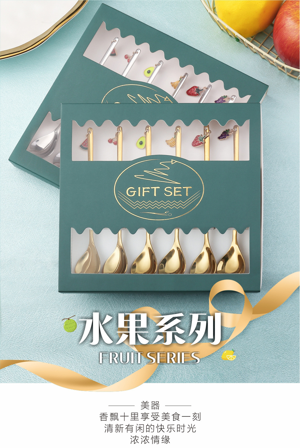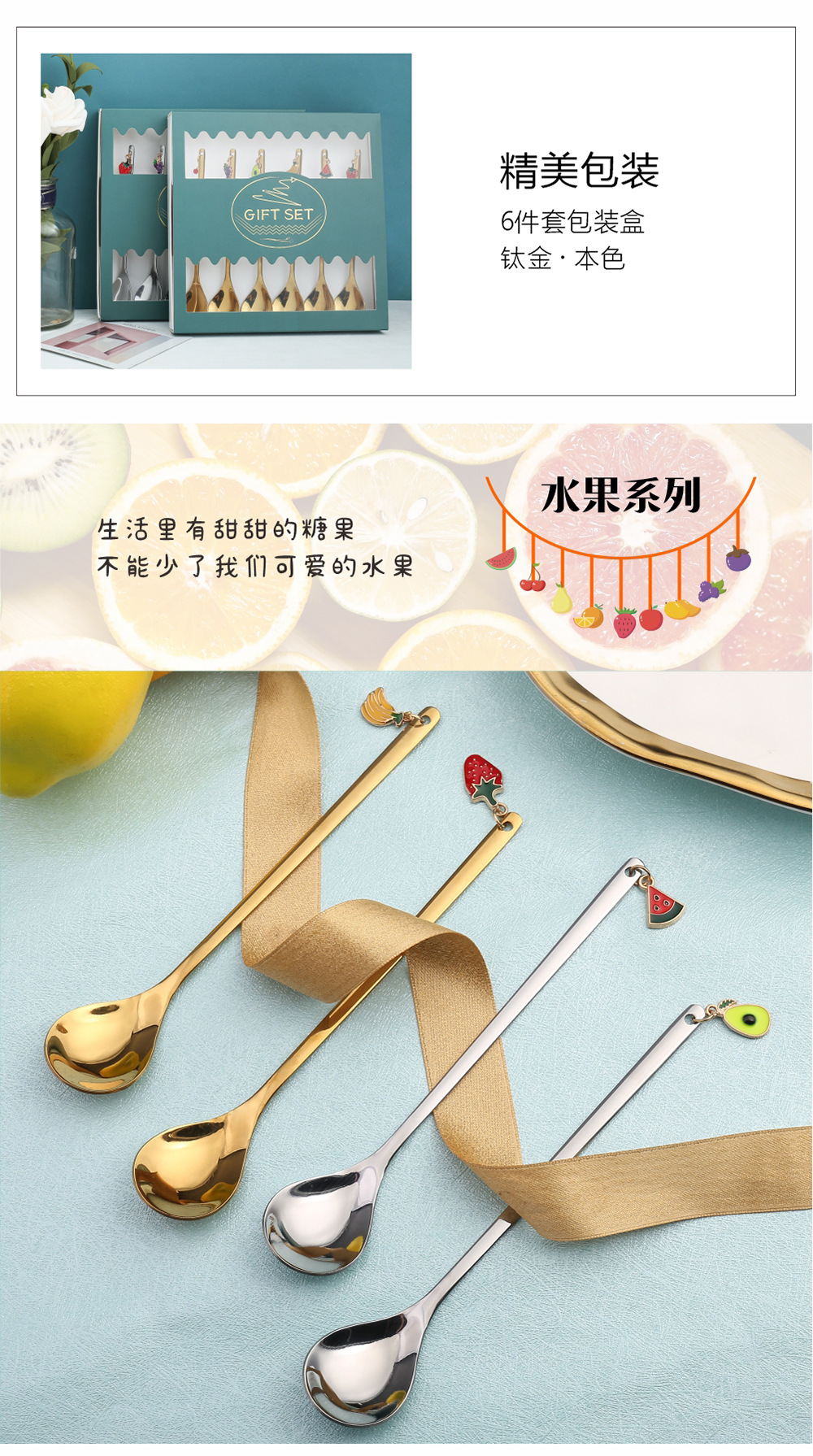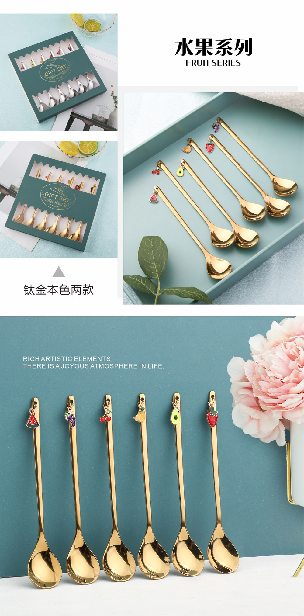 스테인레스 스틸 과일 펜던트 스푼 크리 에이 티브 만화 커피 믹싱 스푼 귀여운 크리스마스 디저트 스푼 식기 세트