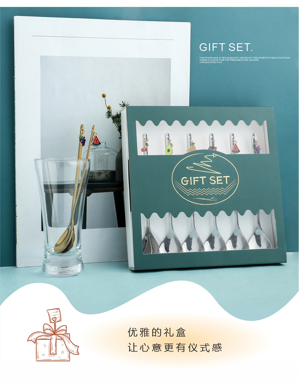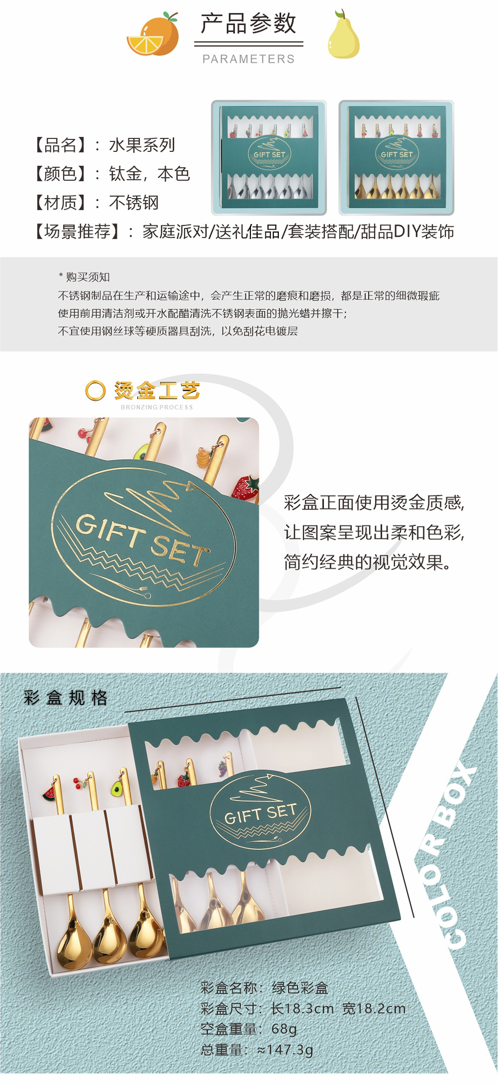 • 2: 티타늄 여섯 과일 스푼 포크 그린 박스