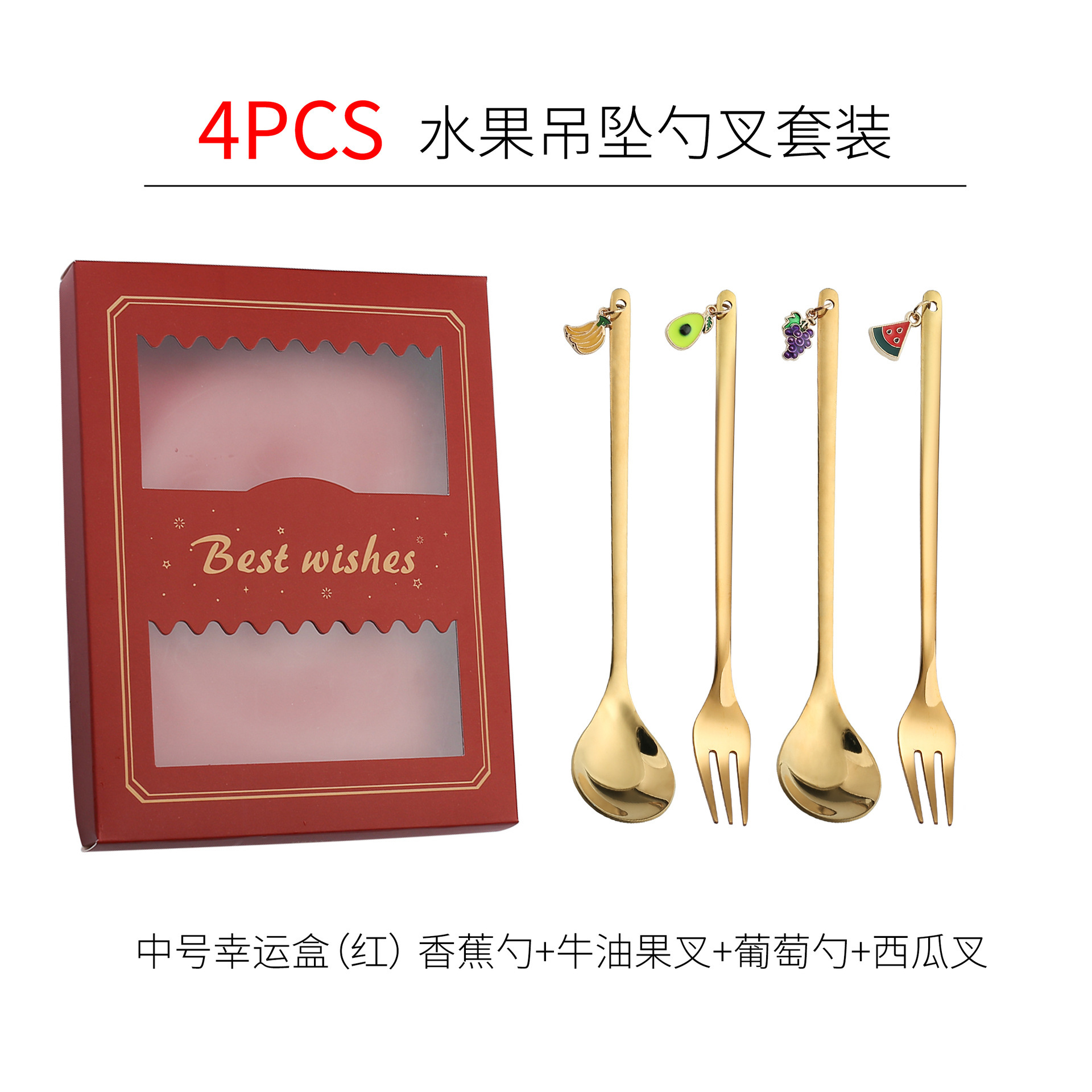 • 3: 티타늄 과일 펜던트 스푼 포크 4 세트-빨간색 상자