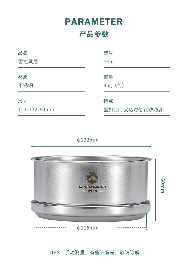Koman S362 야외 캠핑 피크닉 스테인레스 스틸 소형 찐빵 기선 피크닉 휴대용 스노우 풀 그릇 김이 나는 그리드 기선스토어 가기