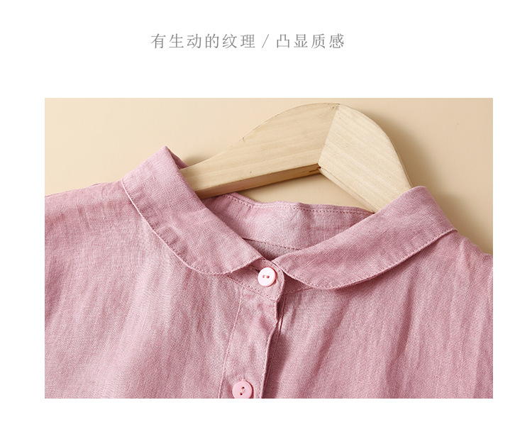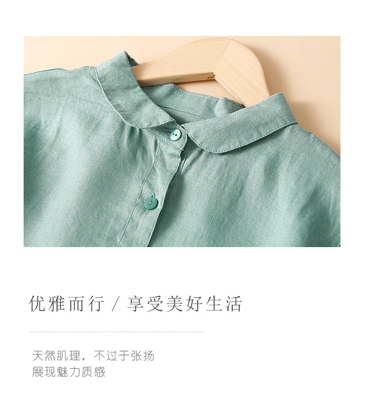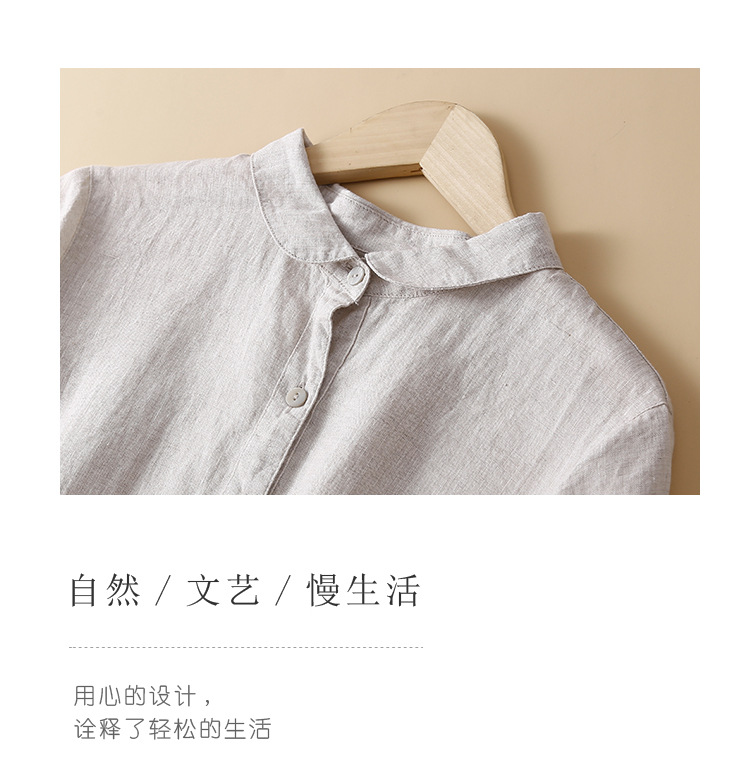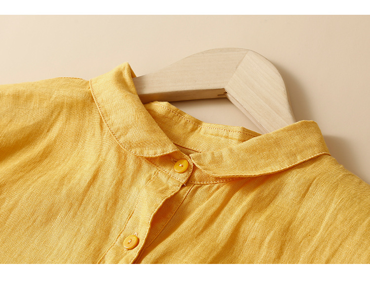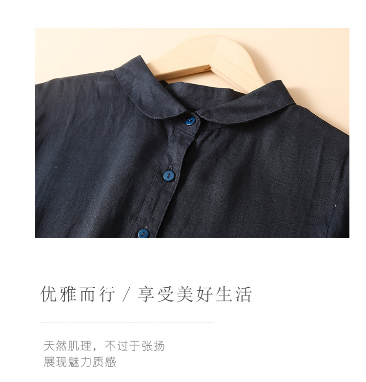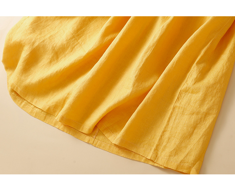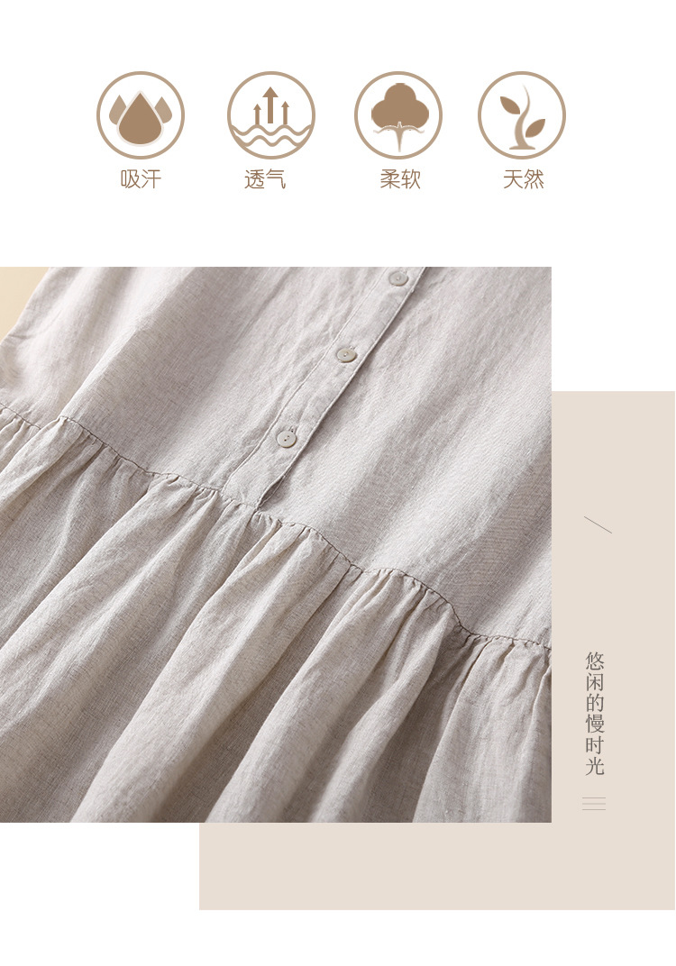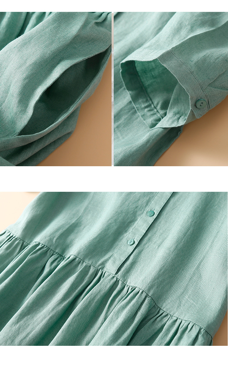 실제 사진 2025 새로운 여름 스타일 문학 느슨한 접합 솔리드 컬러 코튼과 린넨 반팔 드레스 여성 중간 길이 셔츠 드레스스토어 가기