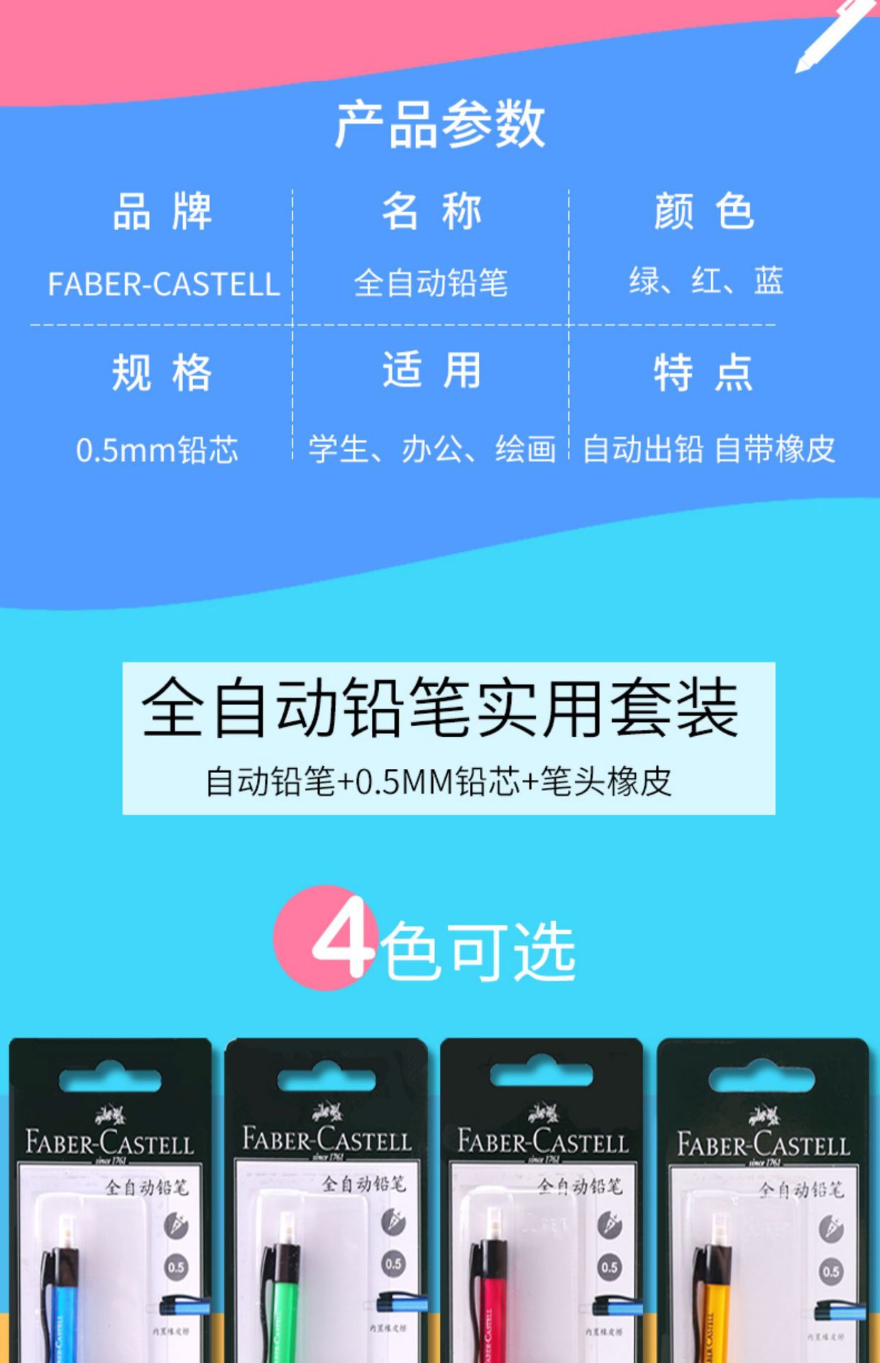 Faberge 자동 연필 세트 플라스틱 색 어린이 문구 0.5 자동 펜 쓰기 연속 코어 연필스토어 가기