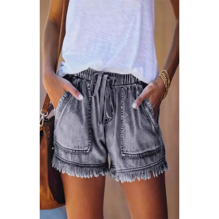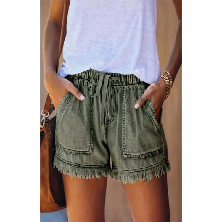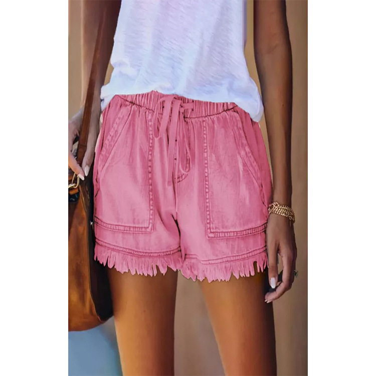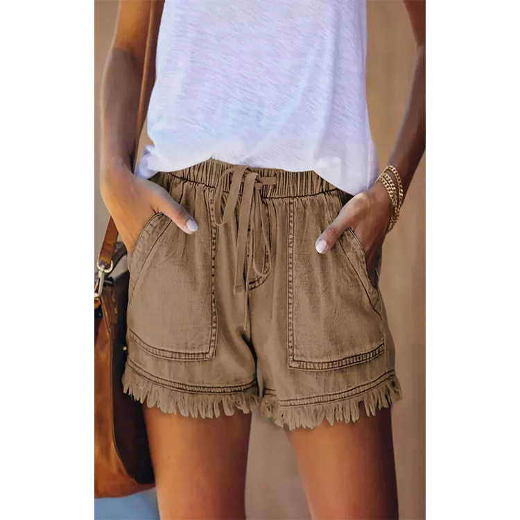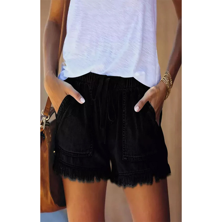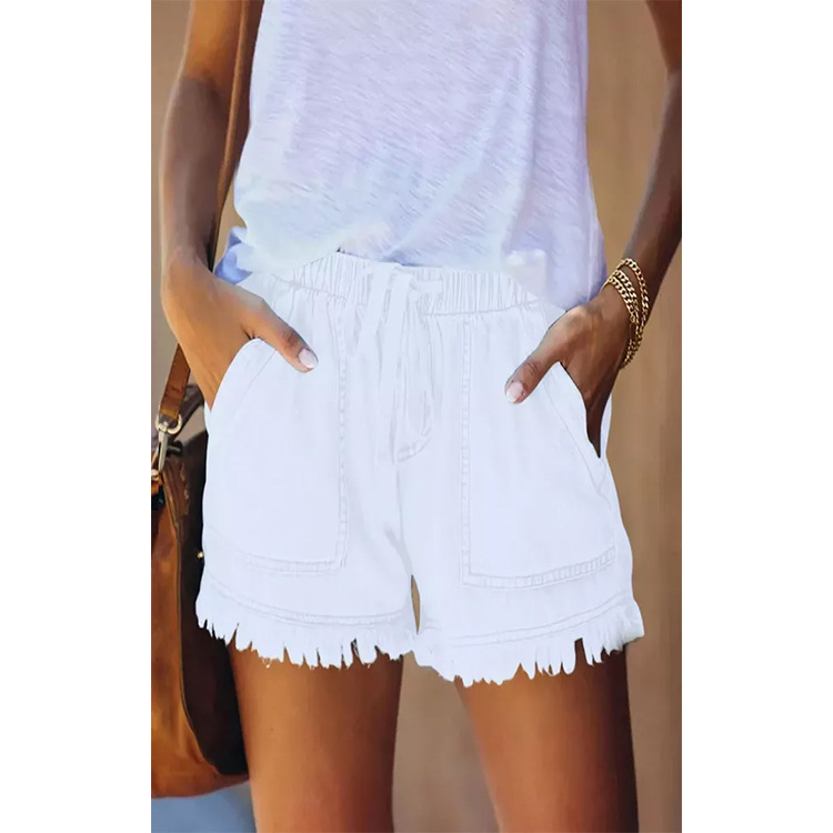 【特点】:两侧和背面实用口袋,松紧腰部抽绳,流苏设计时尚,纯色休闲始终引领时尚潮流。