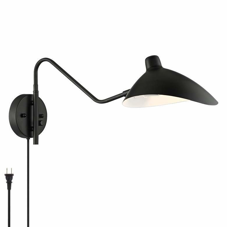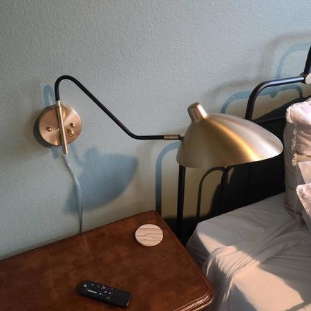 这款实用的摇臂插入式壁灯采用时尚的设计与复古的中世纪现代美学相得益彰。复古黄铜饰面突出了金属设计,黑色饰面突出了手臂。灯罩采用朝下不对称造型,摆臂可左右调节,灯头可多方向旋转,实现集中照明。