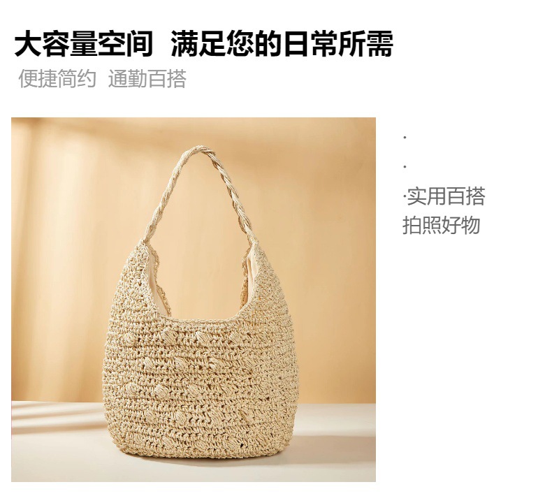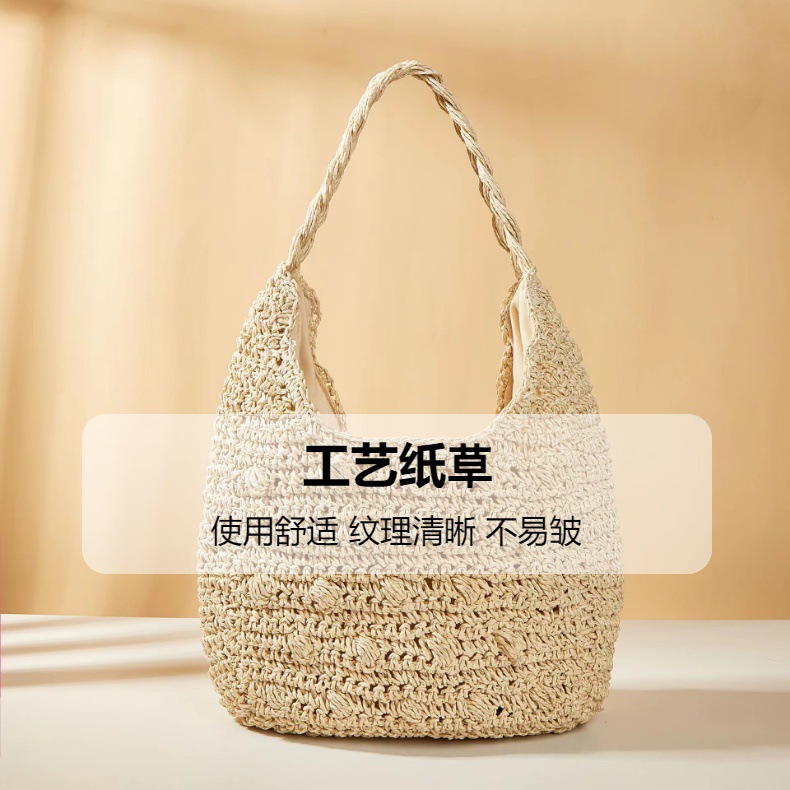 프랑스 스타일 틈새 짚 짠 여성 가방 짠 가방 수제 모리 스타일 어깨 휴대용 겨드랑이 가방 해변 비치 가방