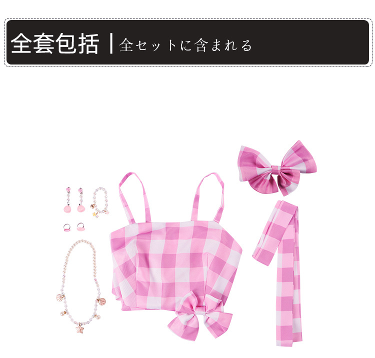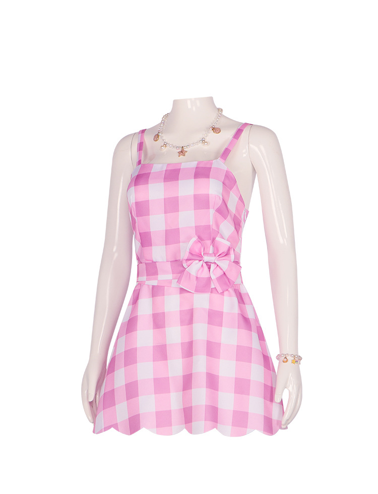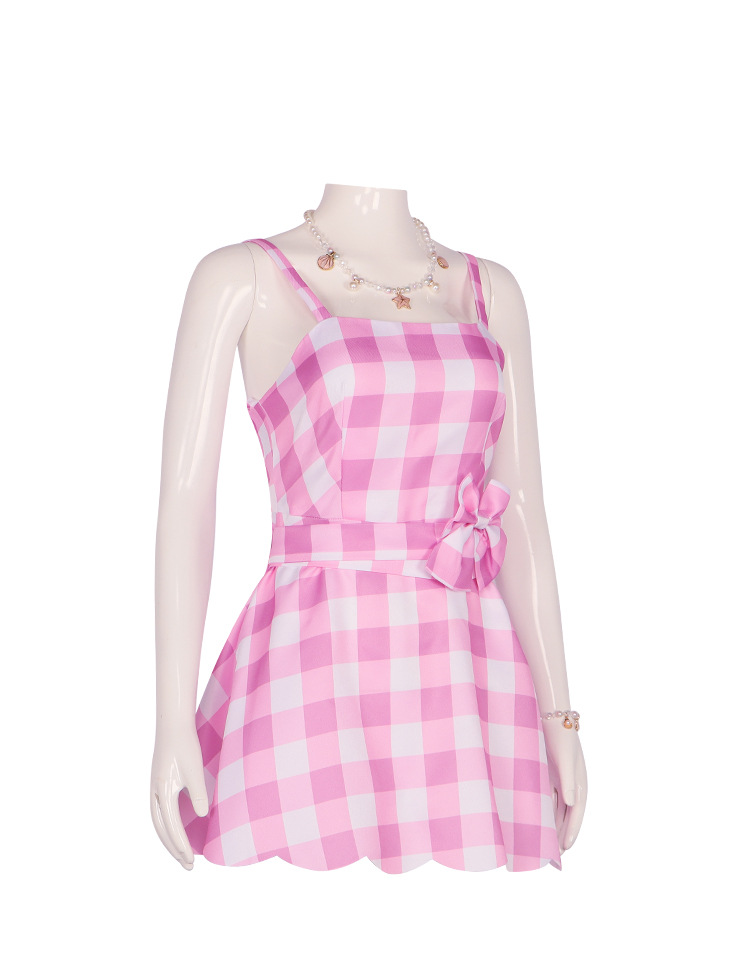 • 바비 격자 무늬 긴 원피스 여성 풀 세트